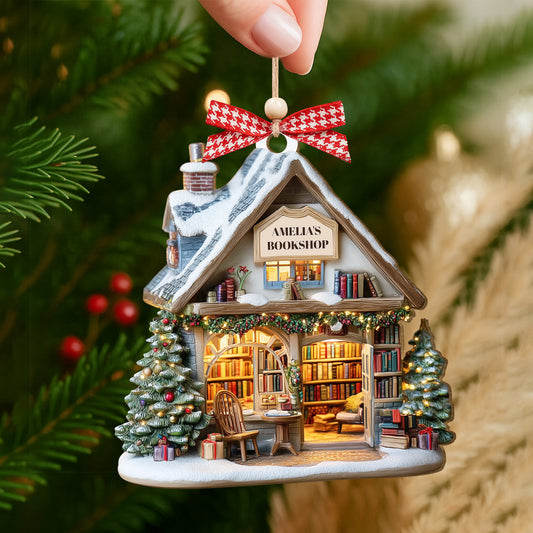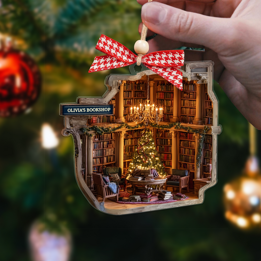 Book Lover Ornament, Custom Bookshelf Ornament, Personalized Name Ornament, Christmas Gift for Readers, Teachers, Librarians
