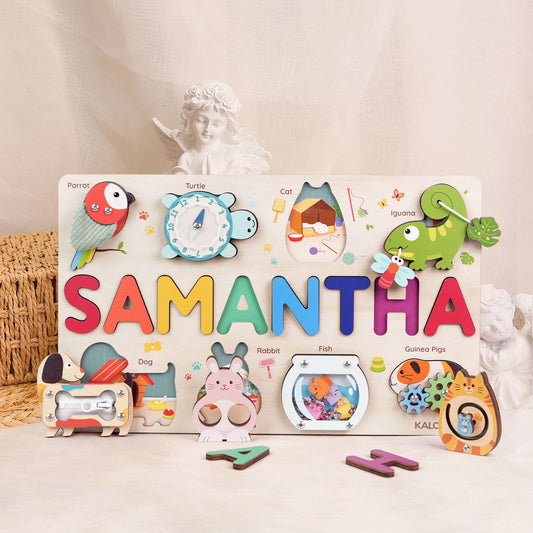 Personalized Pet-Themed Name Puzzle Board, Montessori Sensory Toy for Toddlers NP55