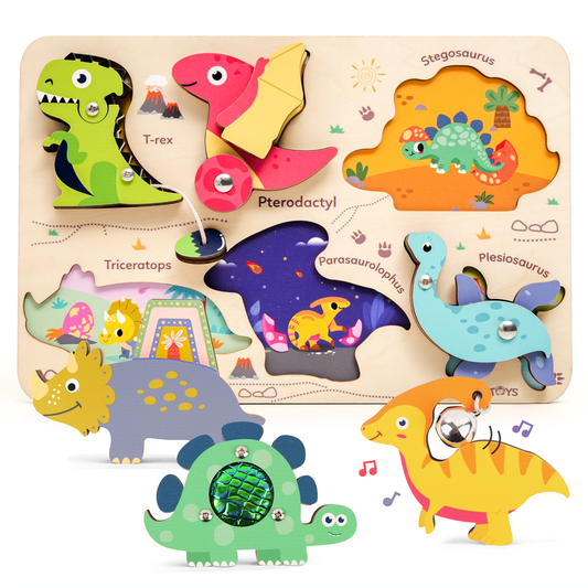 Wooden Dinosaur Sensory Puzzle Toy Set - Montessori Learning Toy for Toddlers (Ages 1–3)