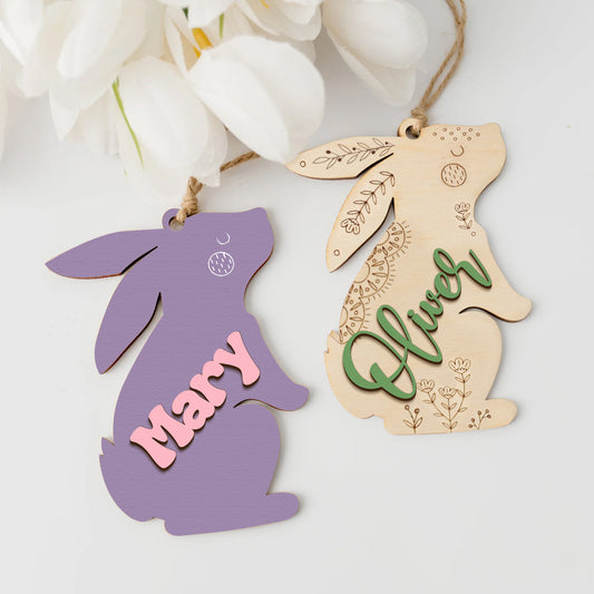 Personalized Easter Tag, Custom Bunny Name Tag, Easter Gift Tag, Easter Basket Tag, Wooden Rabbit Keepsake, Baby Girl Gifts, ET03