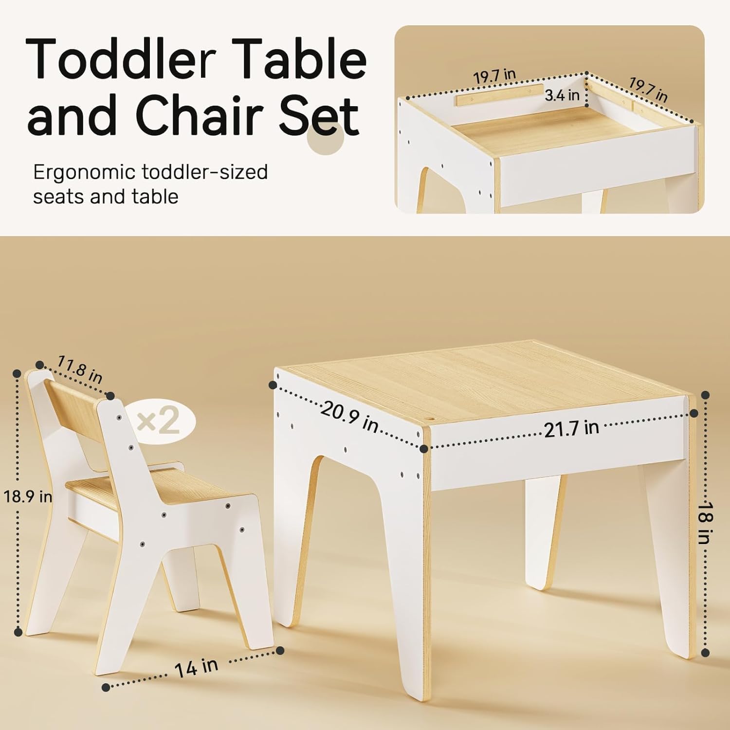Table: 21.7” L × 20.9” W × 18” H