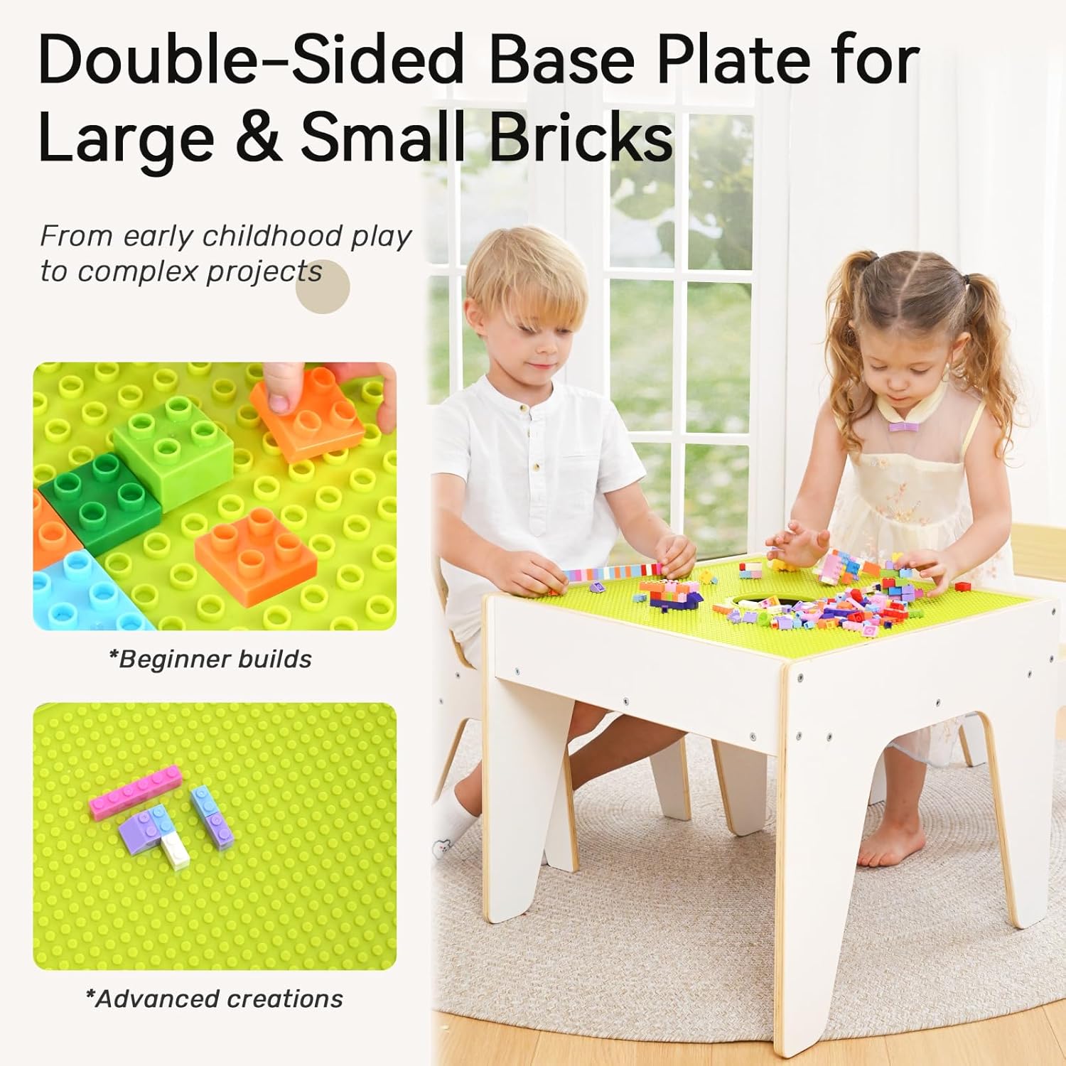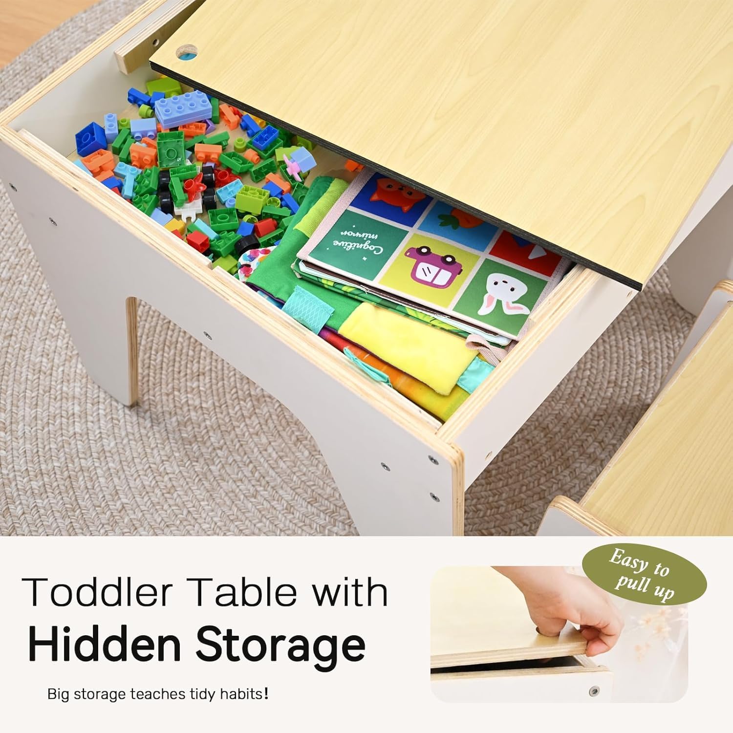 🧺 Hidden Storage Compartment: Built-in storage box under the tabletop keeps Lego bricks, toys, books, and art supplies neatly organized. Say goodbye to clutter!