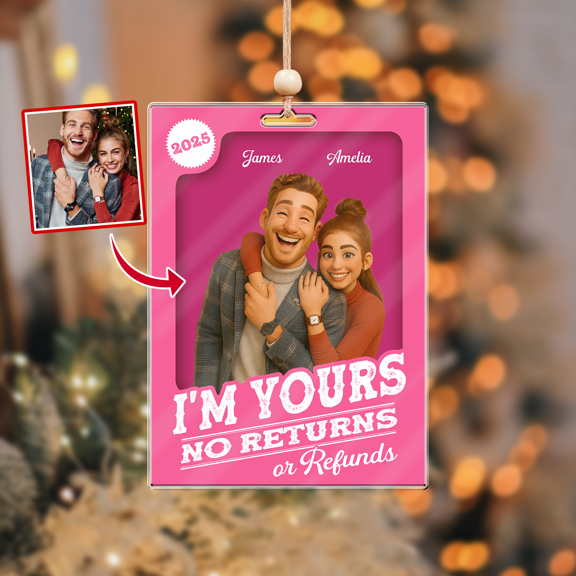 Custom Photo 3D Effect Figure Art Loving Couple, Personalized Couple Photo Acrylic Ornament, Couple 3D Block I'm Yours No Returns Ornament