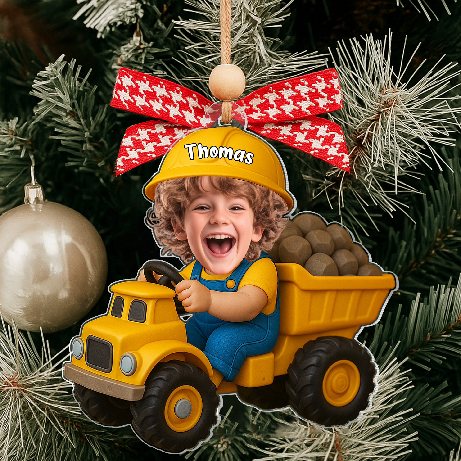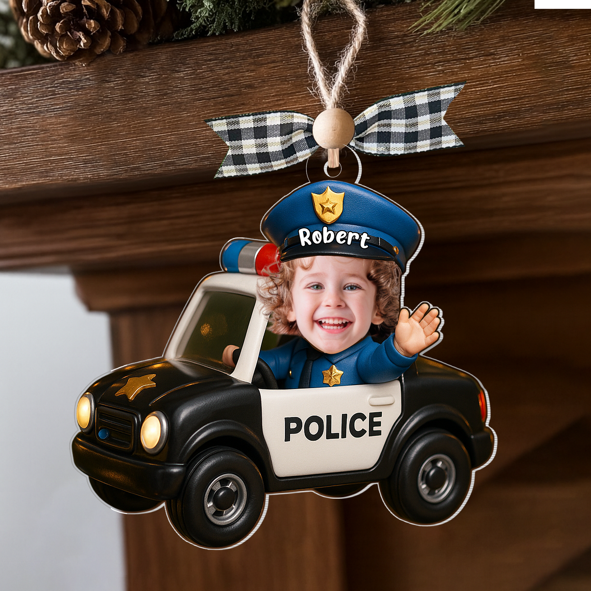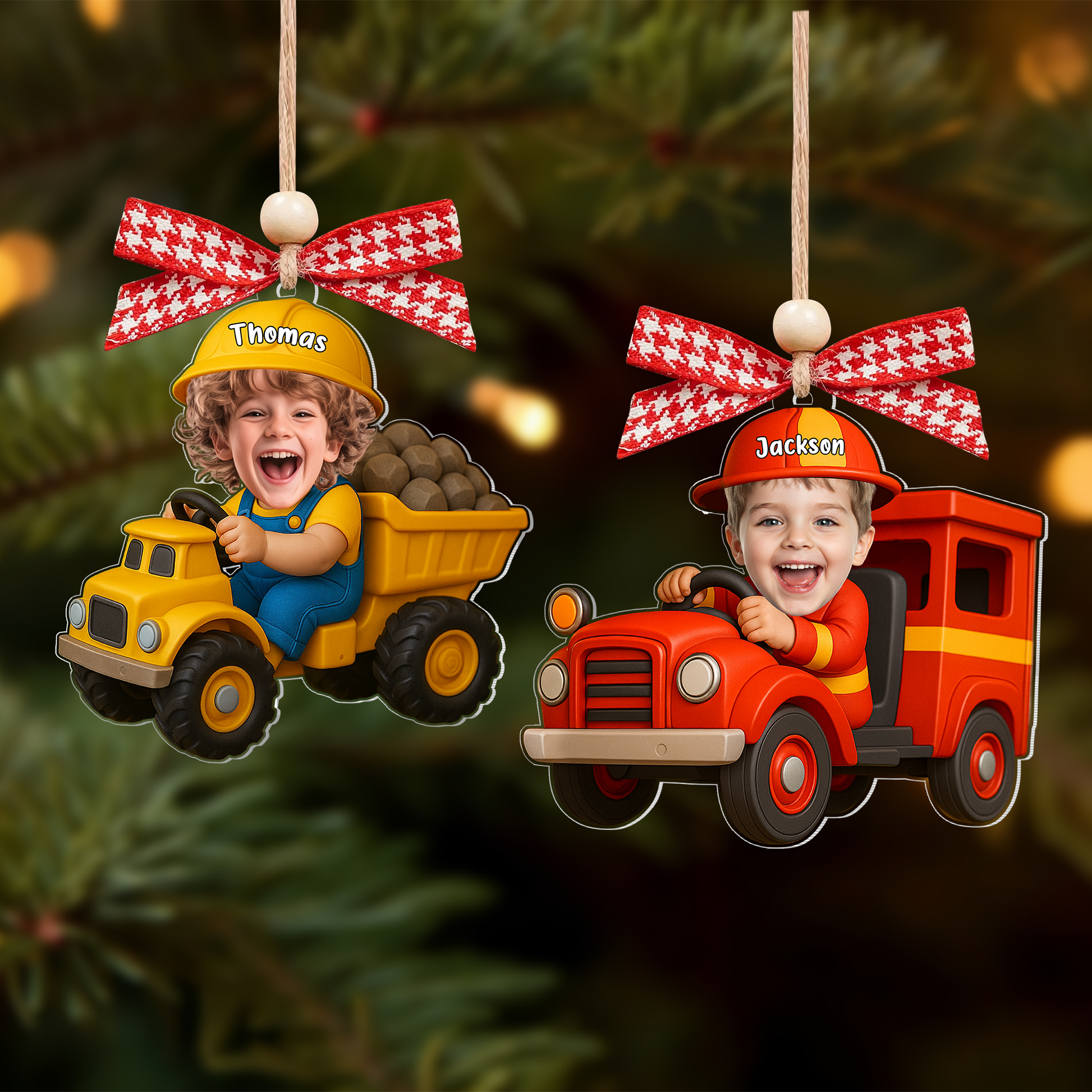 Personalized Photo Ornament, Custom Child Face Car Ornament, Christmas Gift for Kids & Grandkids