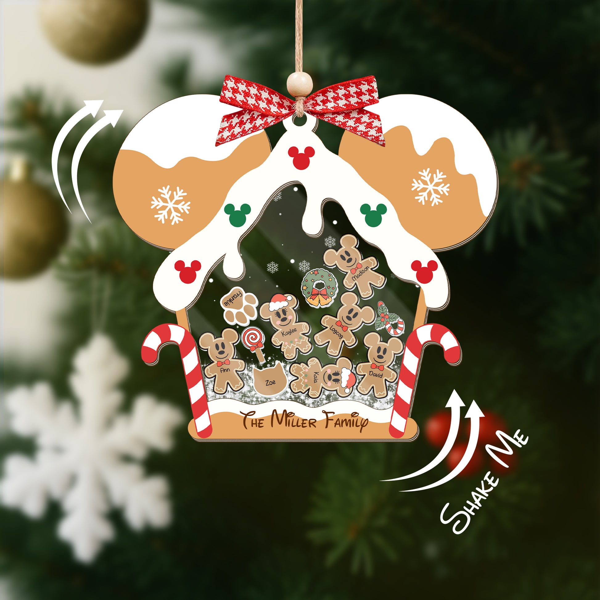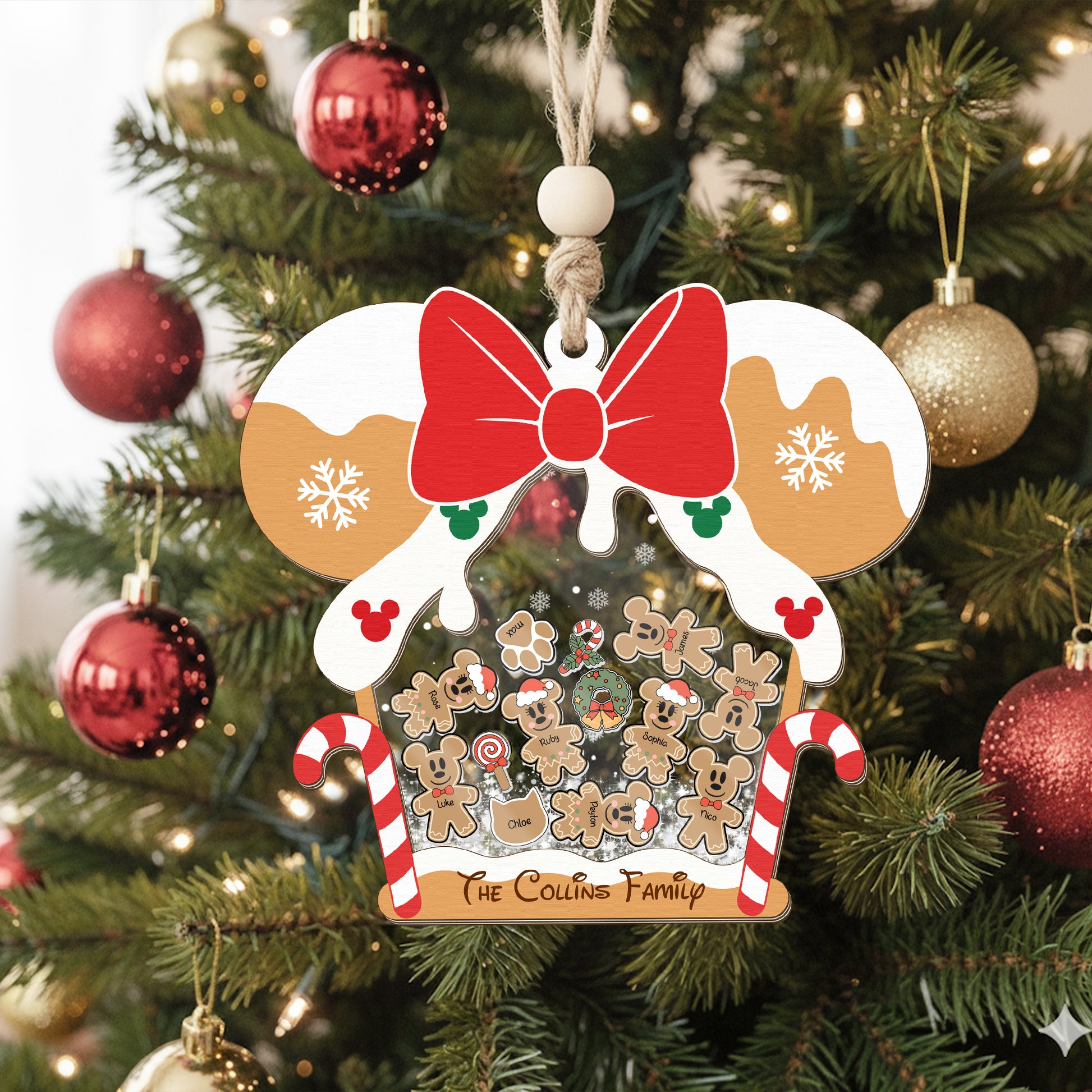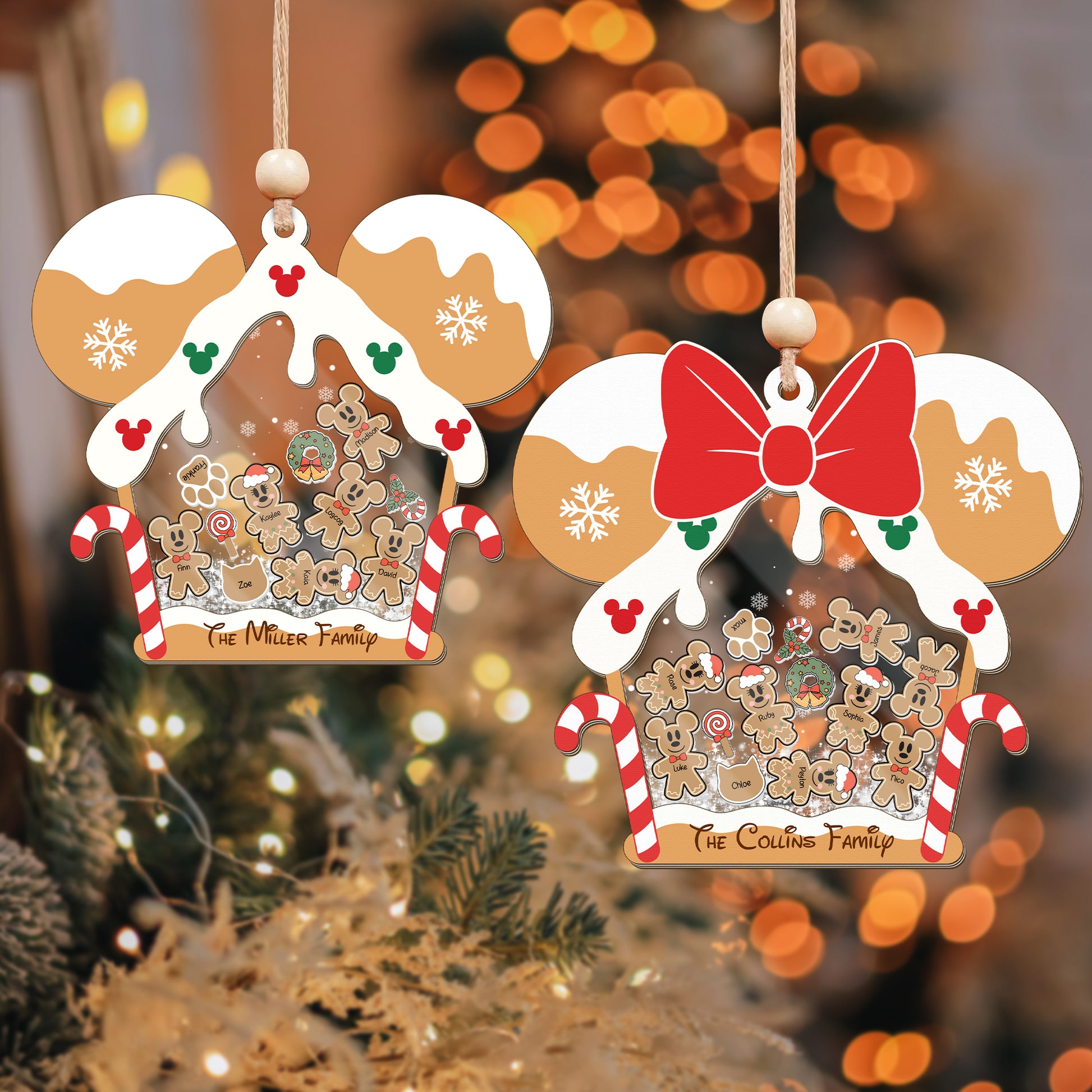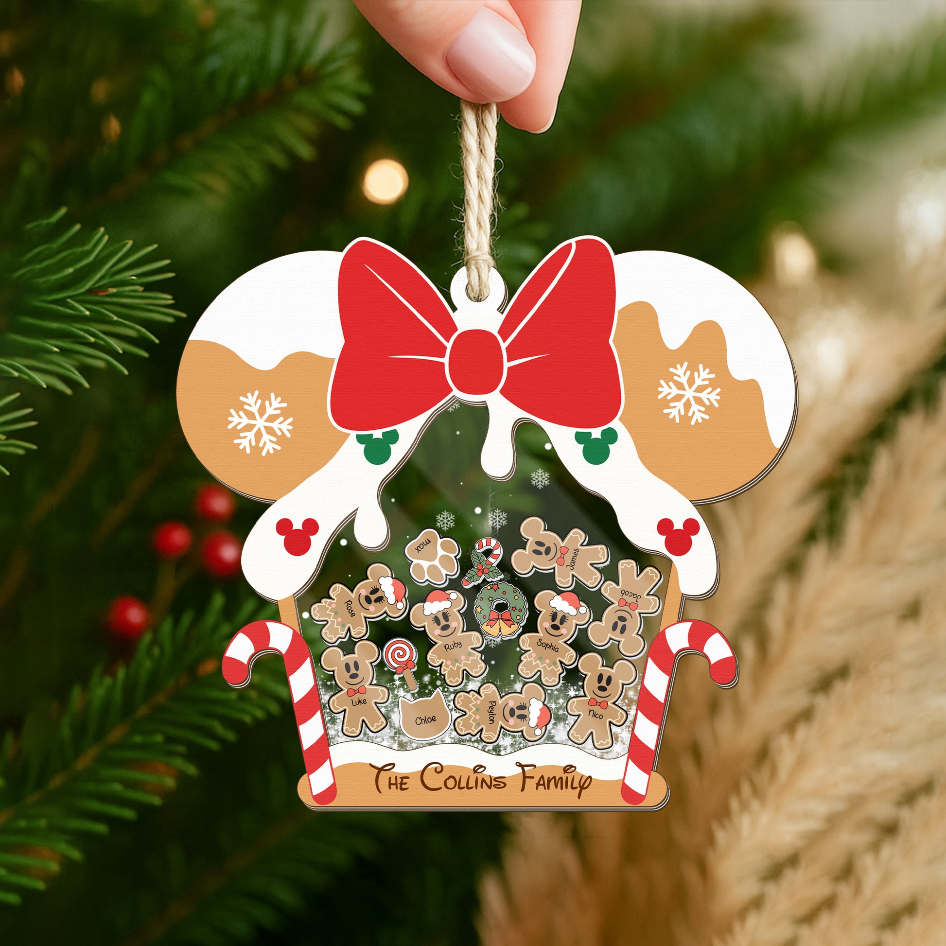 Gingerbread Mouse Family Ornament, Personalized Family Ornaments With Pets, 3 Layer Wooden Ornament