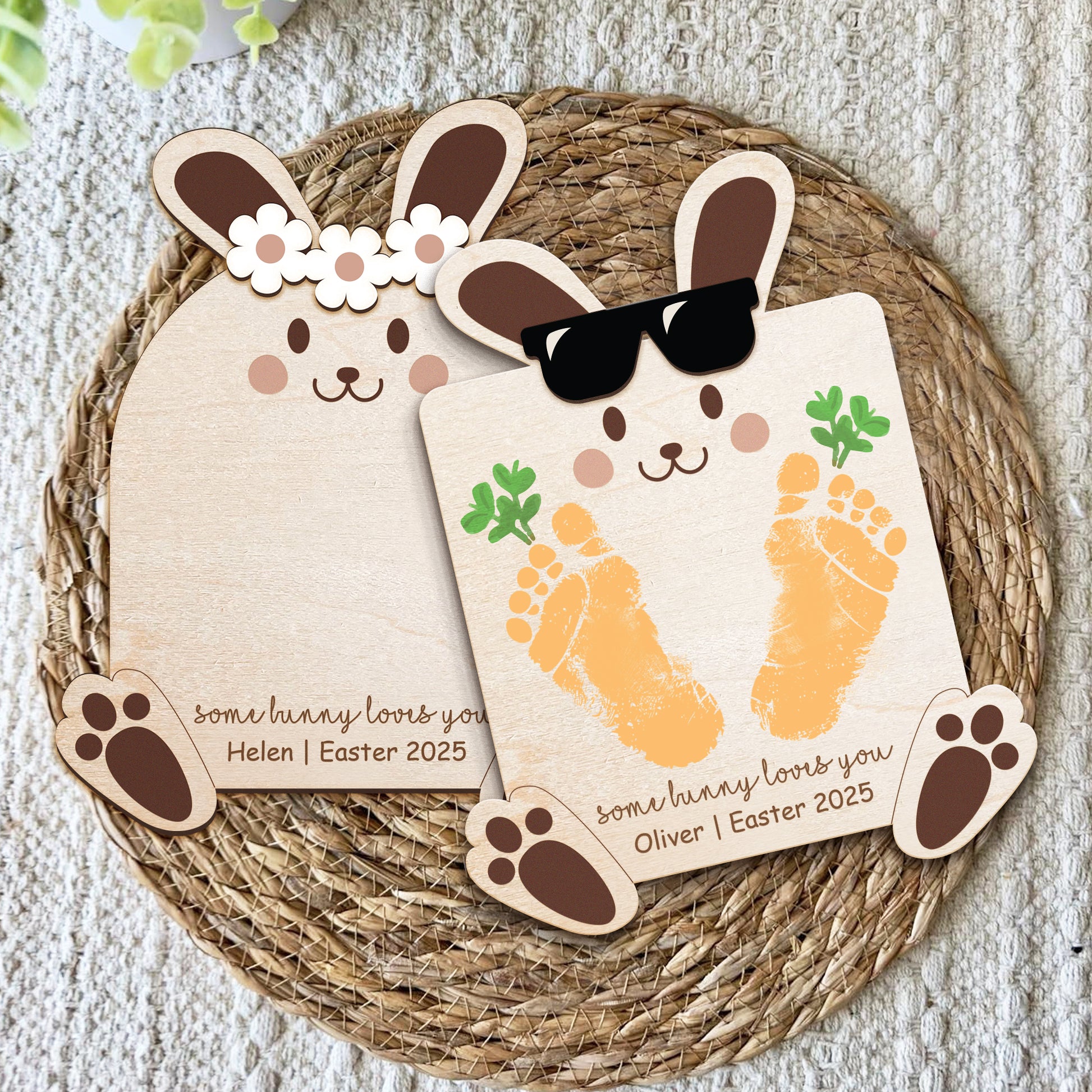 My First Easter Sign, Some Bunny Loves You Sign, Kids Milestones, Footprint Sign, Easter for Kids, Easter DIY, Easter Basket Stuffers FT40