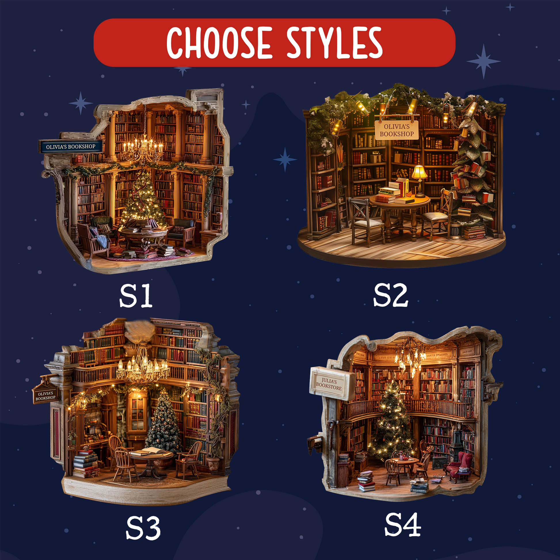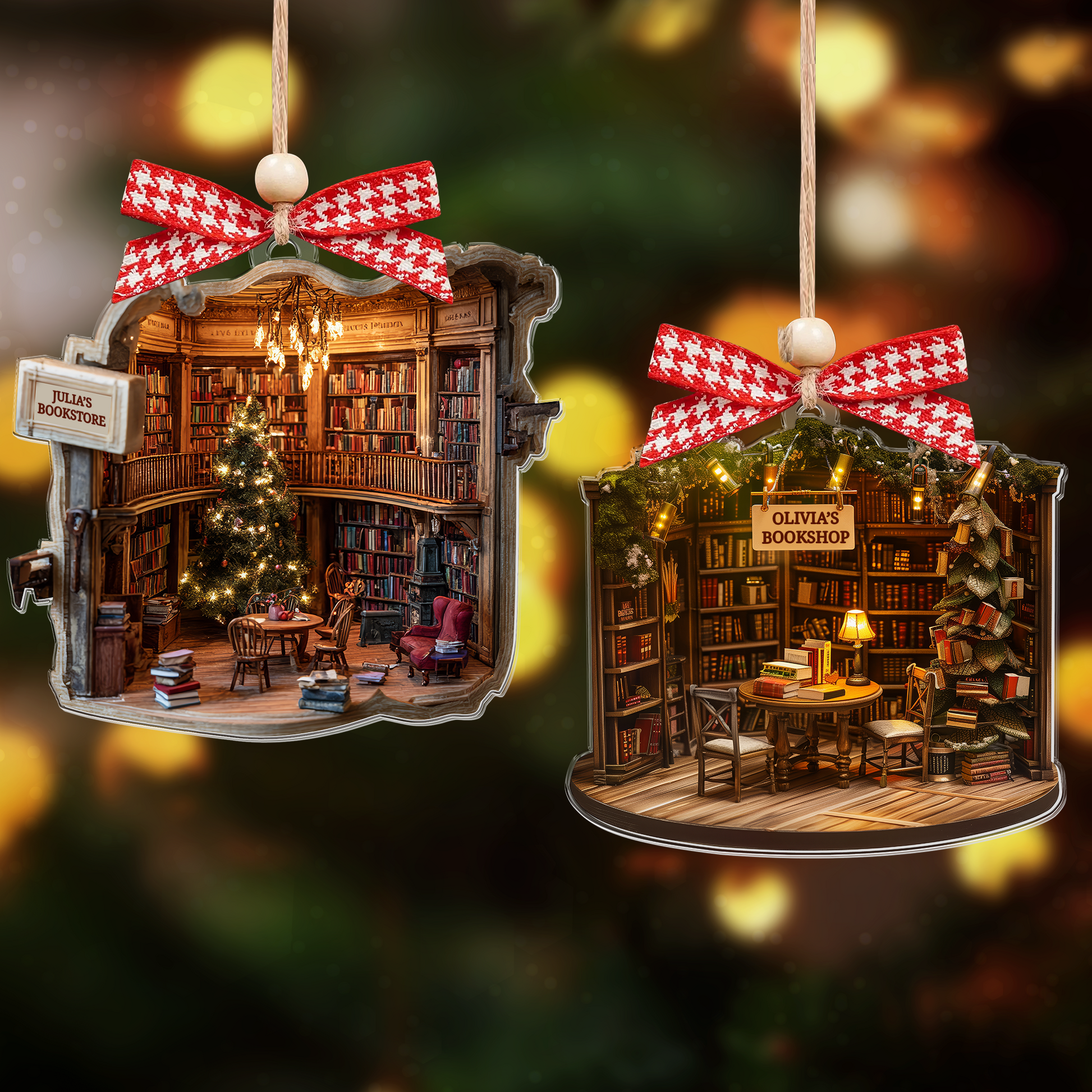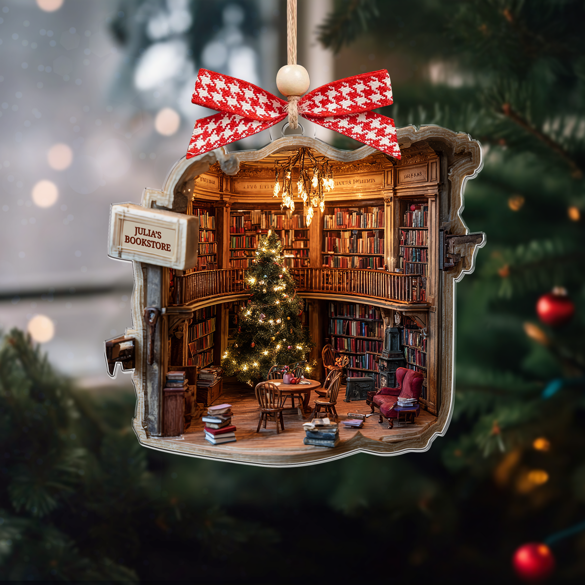 Personalized Book Ornament, Custom Name Bookshelf Ornament, Flat 2D Christmas Ornament, Book Lover Gift for Readers & Librarians