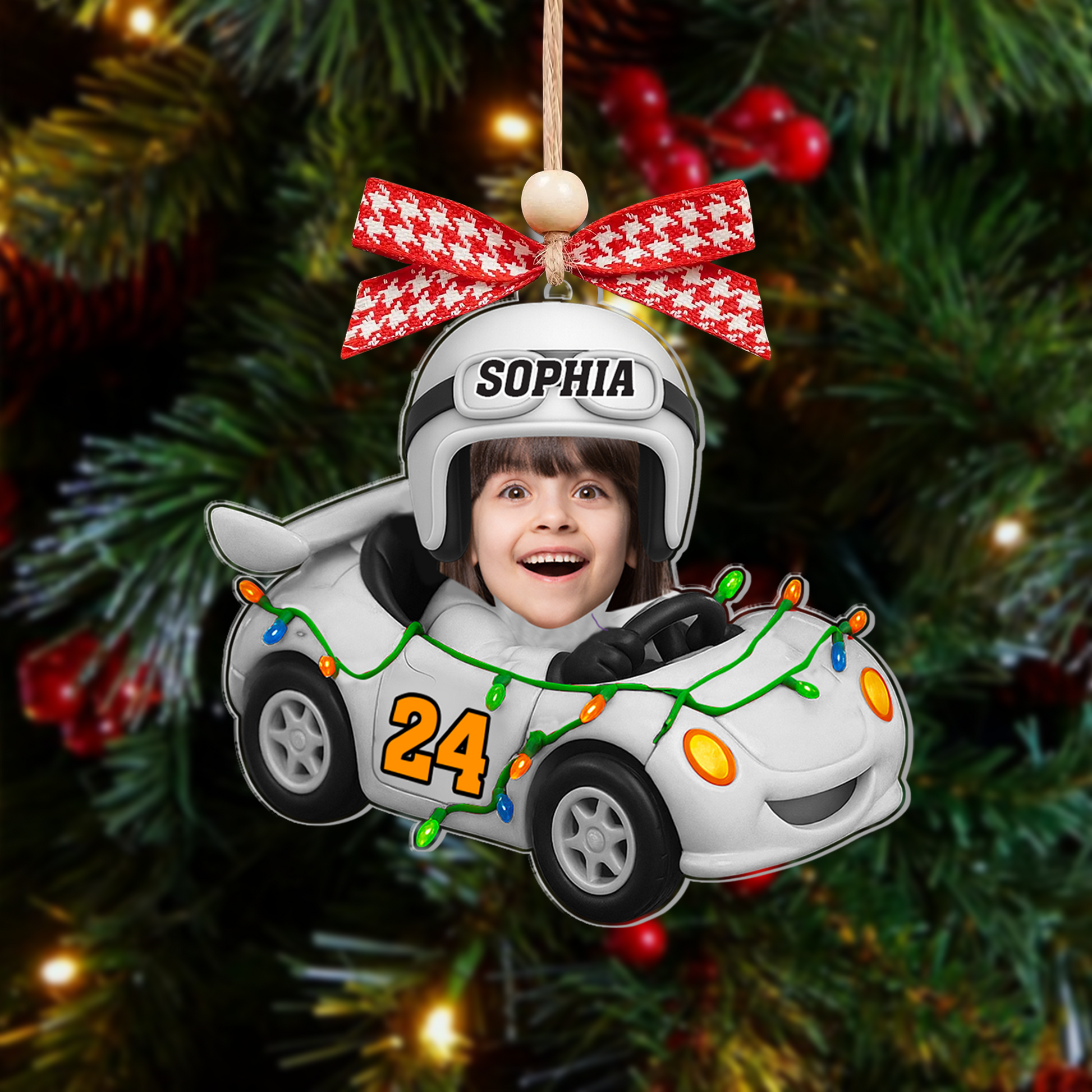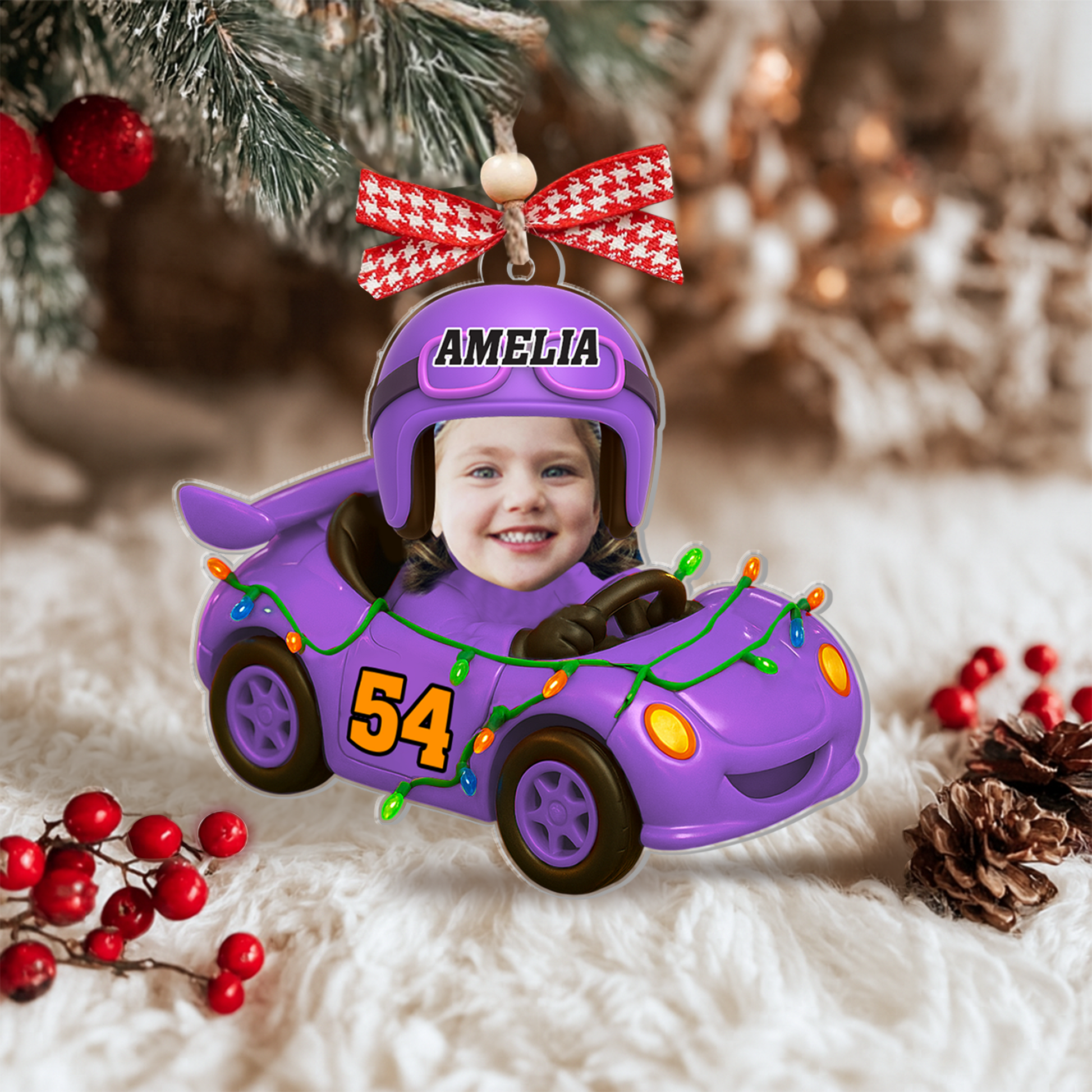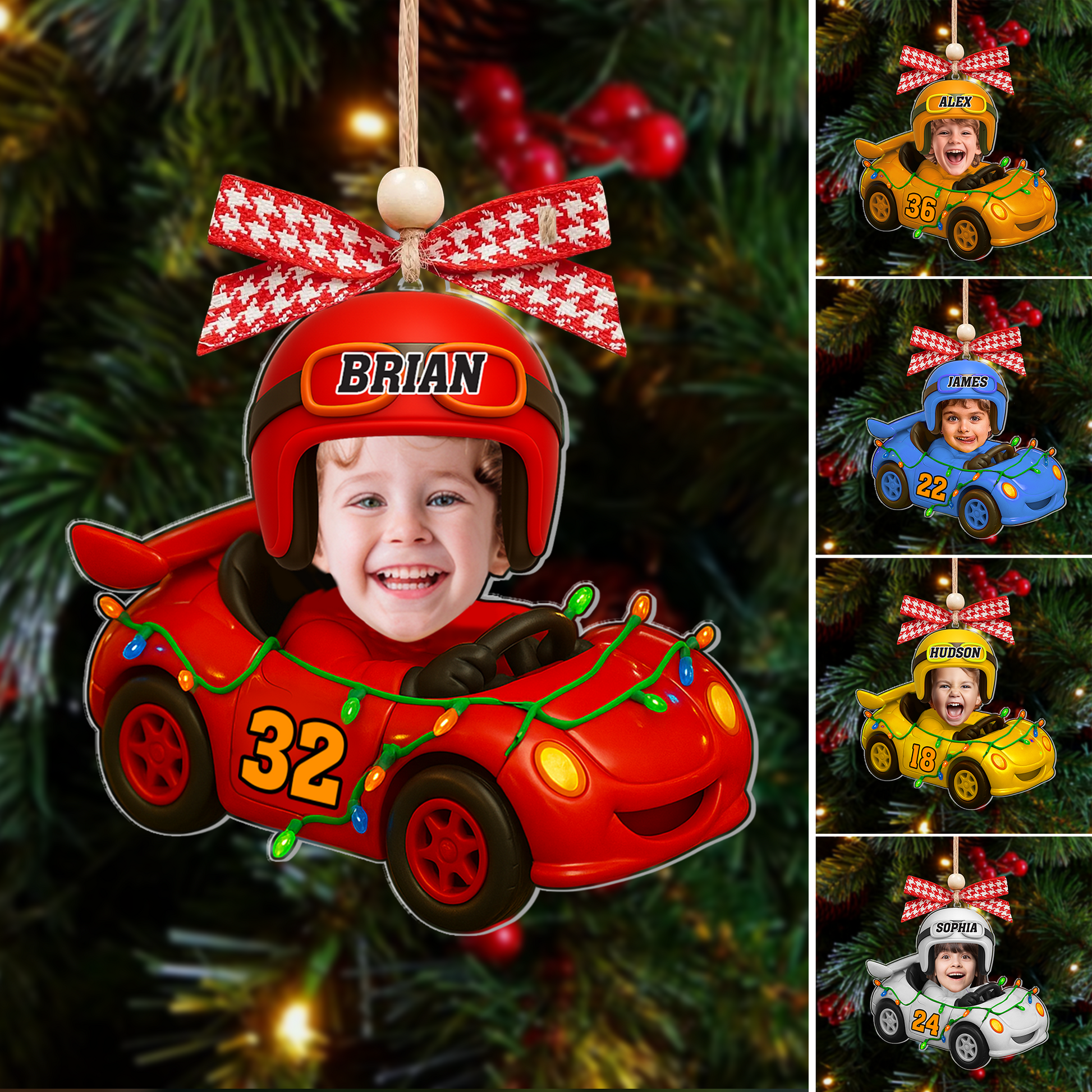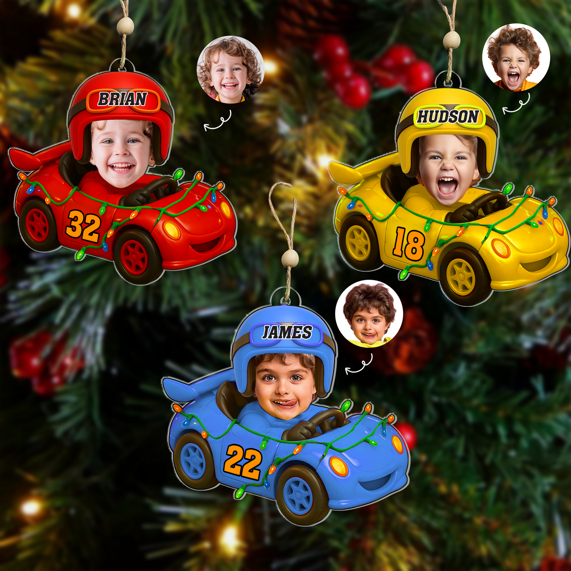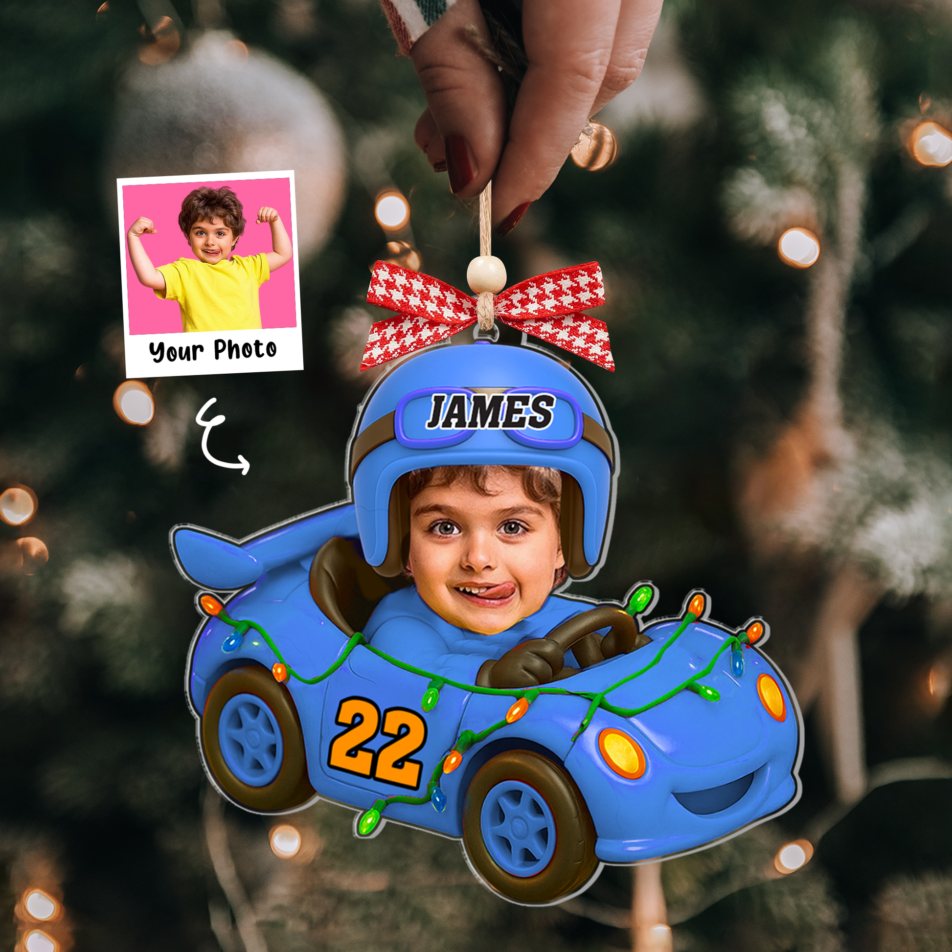 Personalized Cars Acrylic Christmas Ornament, Custom Car Photo Ornament, Kids Name Christmas Ornament, Funny Face Ornament