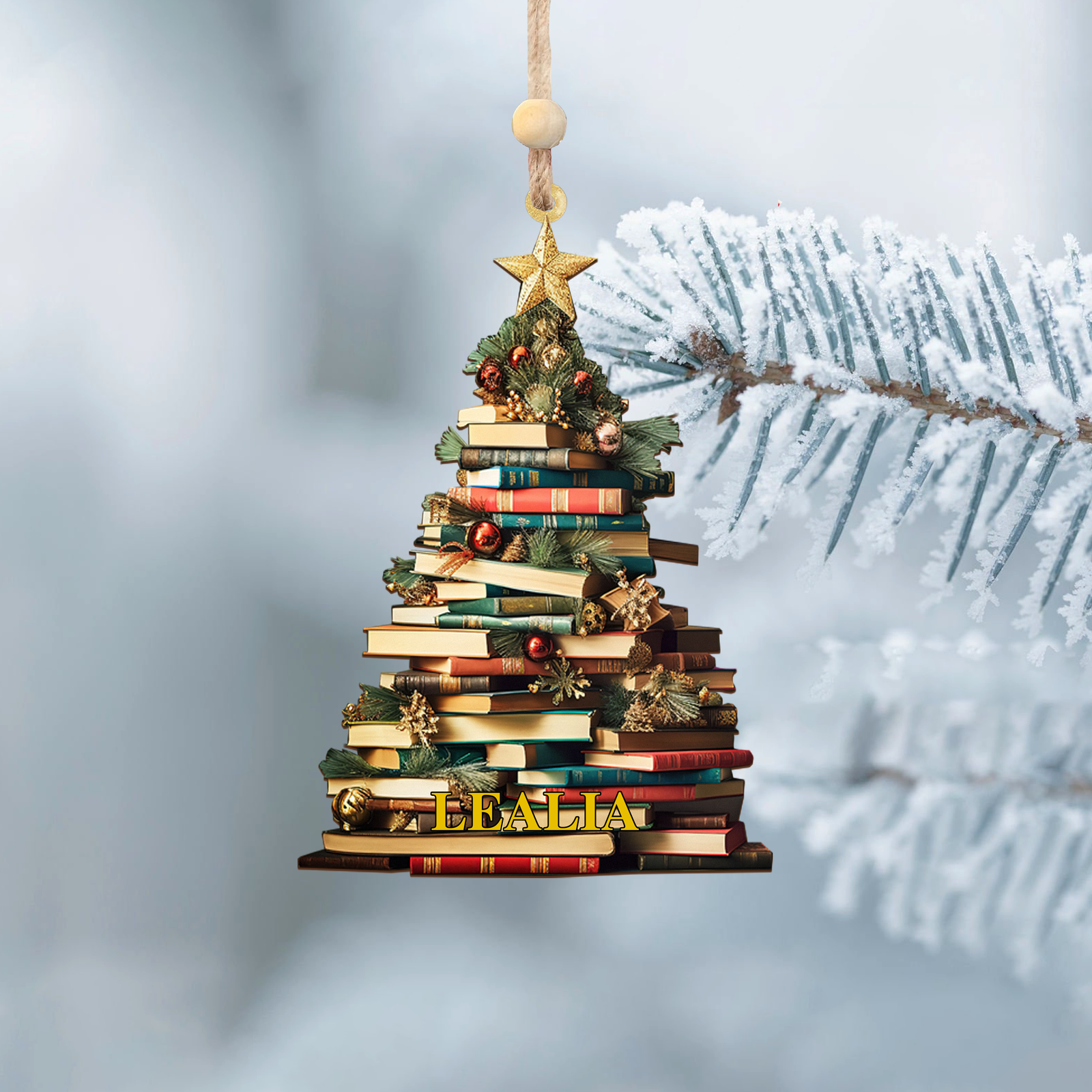 Personalized Christmas Book Tree Name Ornament, Book Lover Gift CF112
