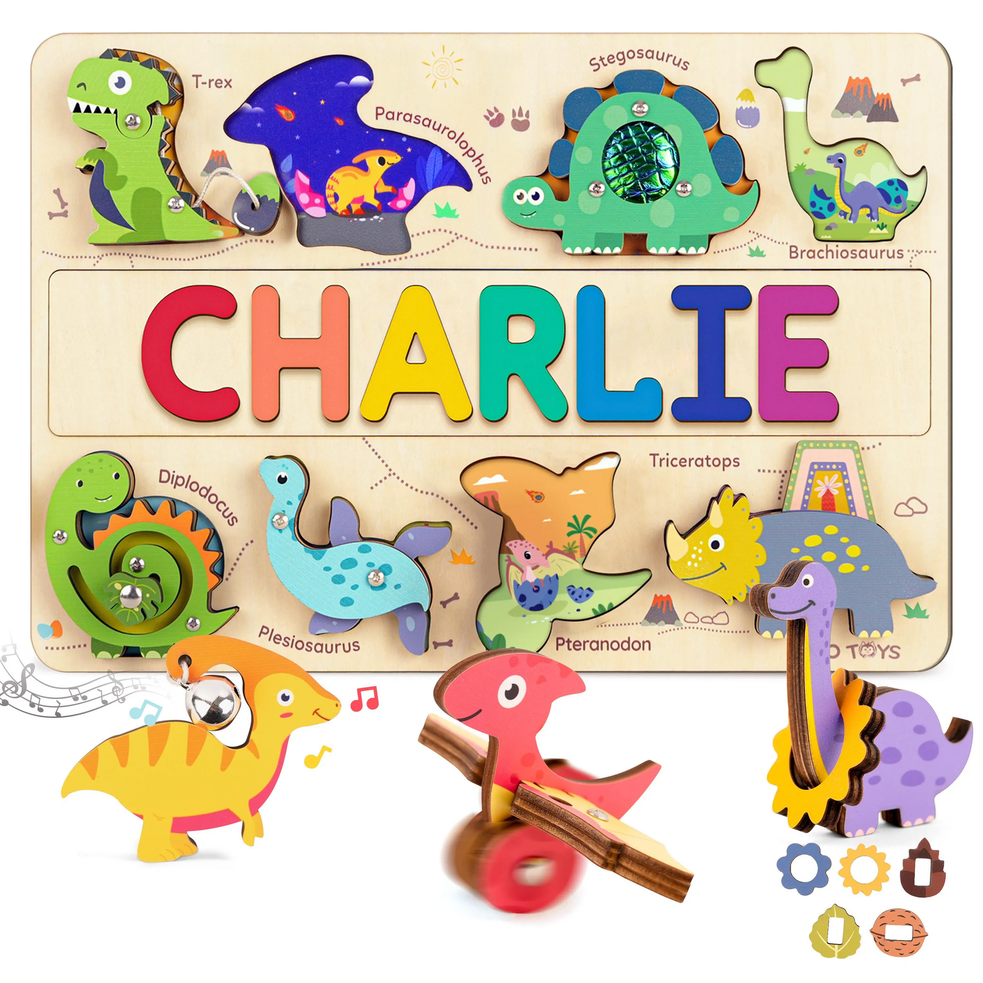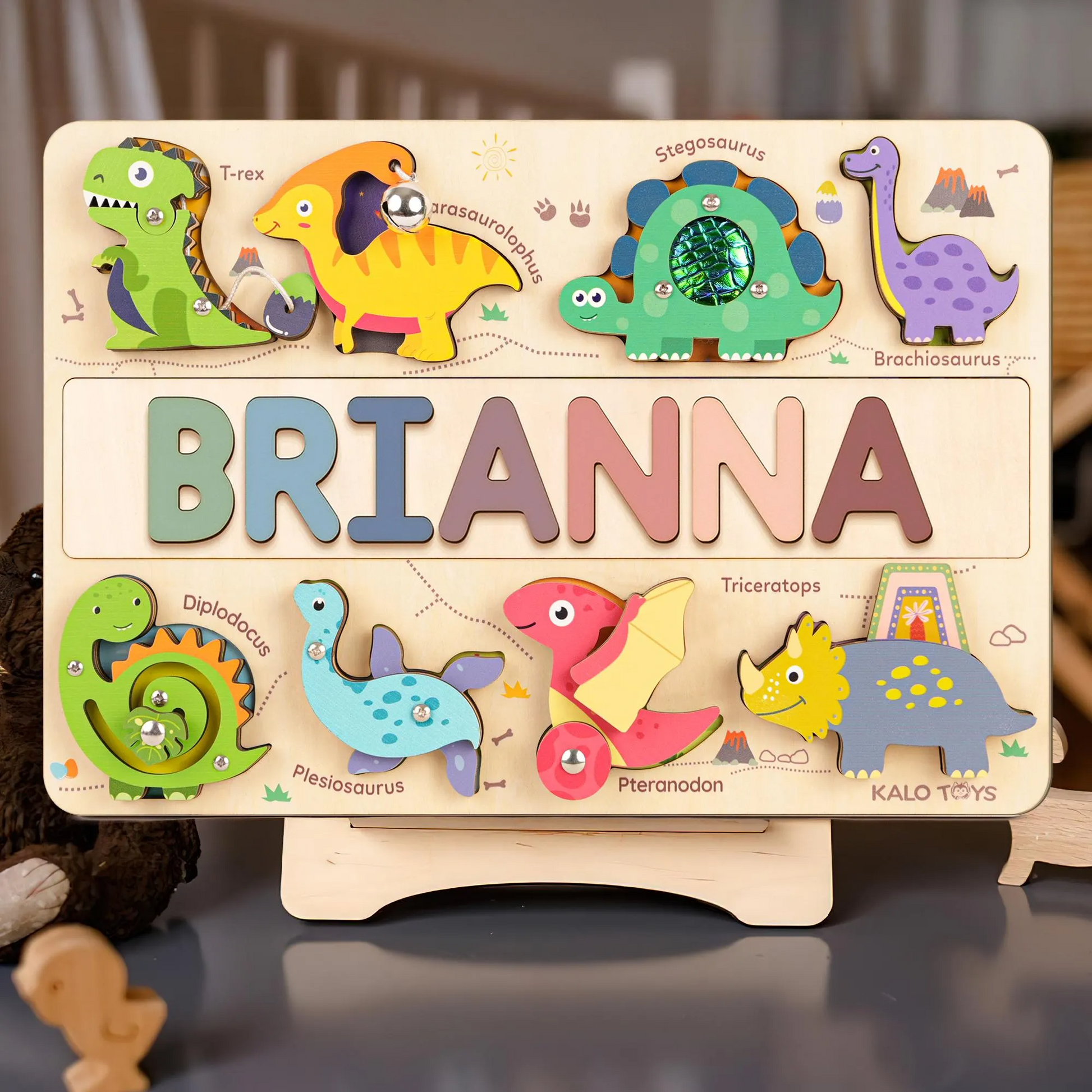 Personalized Dinosaur Name Puzzle, Wooden Montessori Toys, Baby Gift, Baby Girl- Boy Toys, Gift for Kid, First Birthday Gift NP59