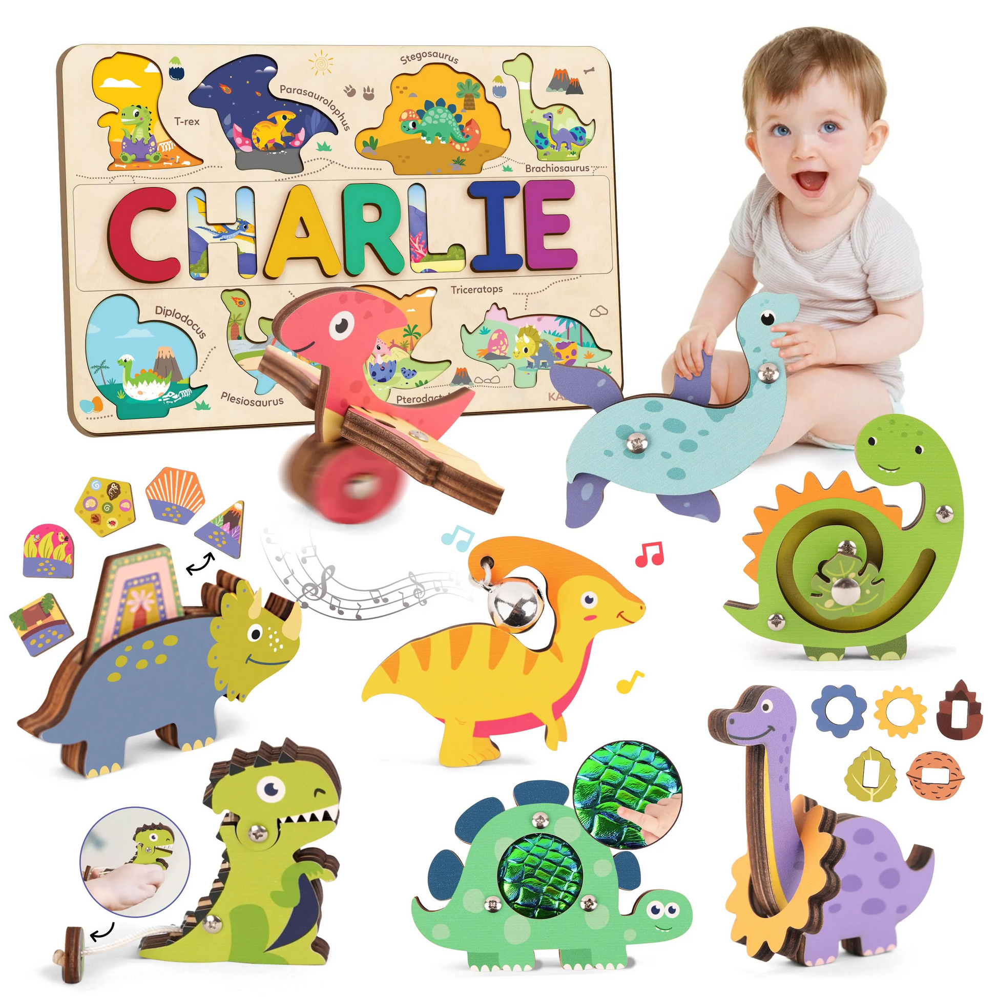Personalized Dinosaur Wooden Name Puzzle – Montessori Sensory Toy (Ages 1-3)