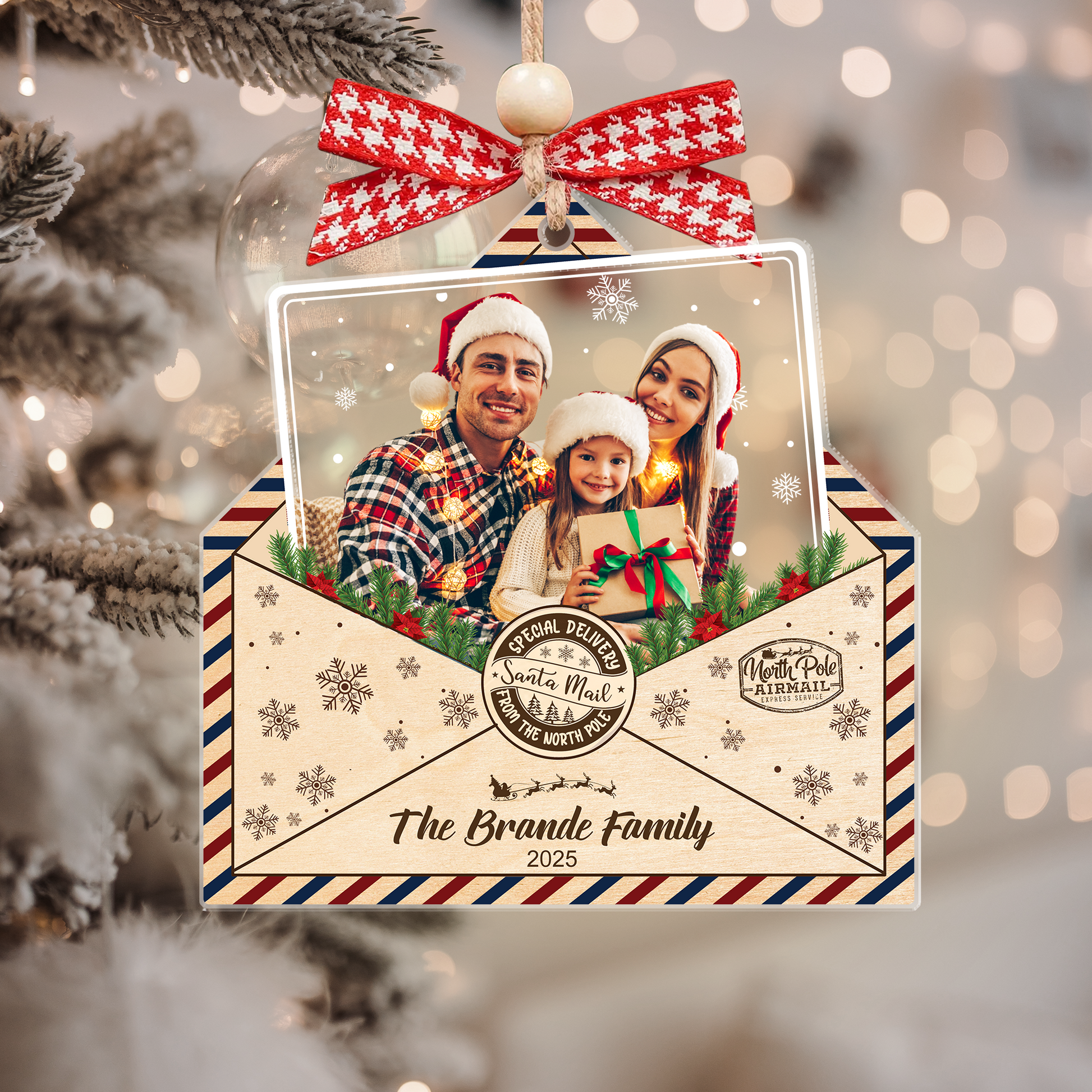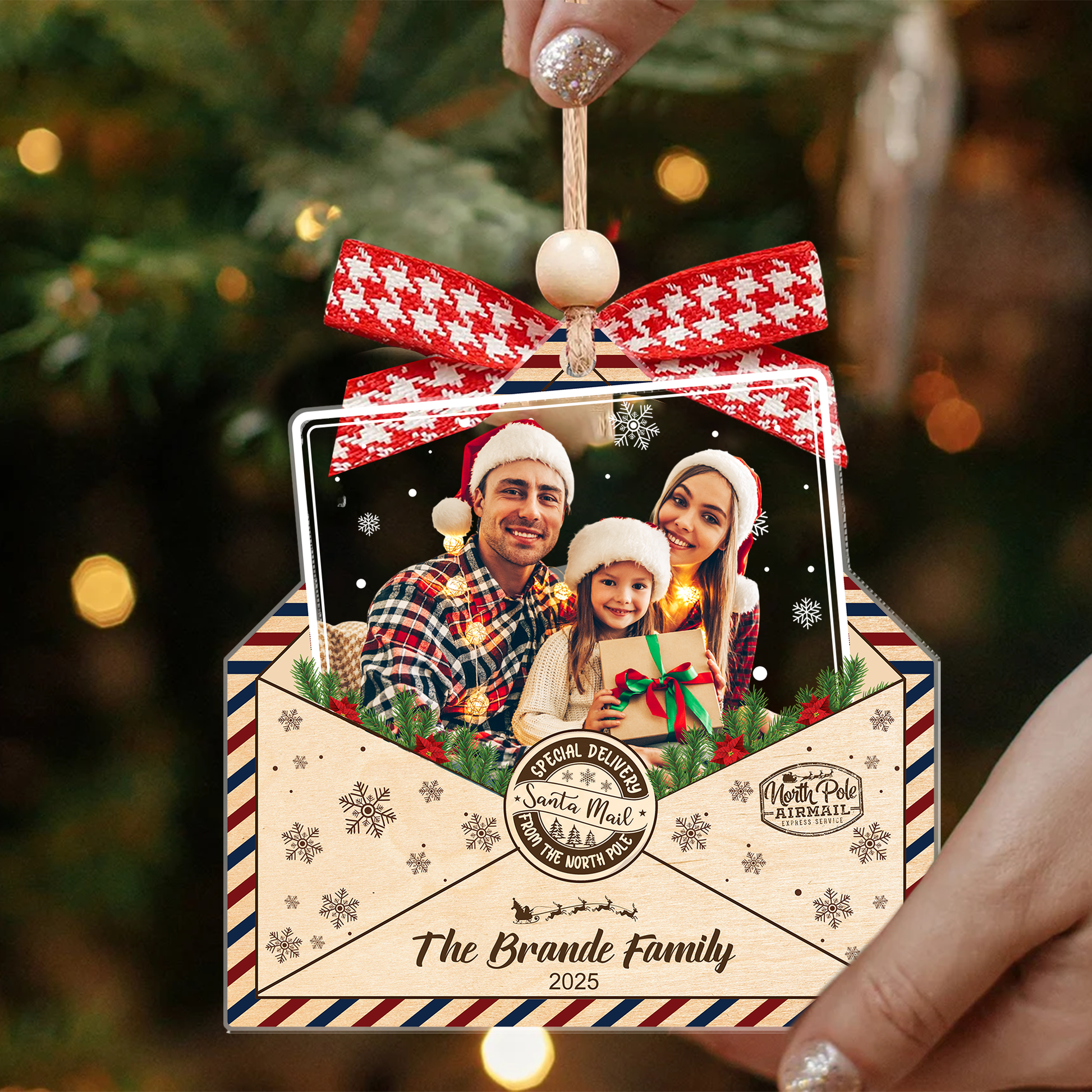 Personalized Family Photo Ornament 2025, Custom Christmas Envelope Ornament, Holiday Keepsake Gift, New Year Tree Decoration