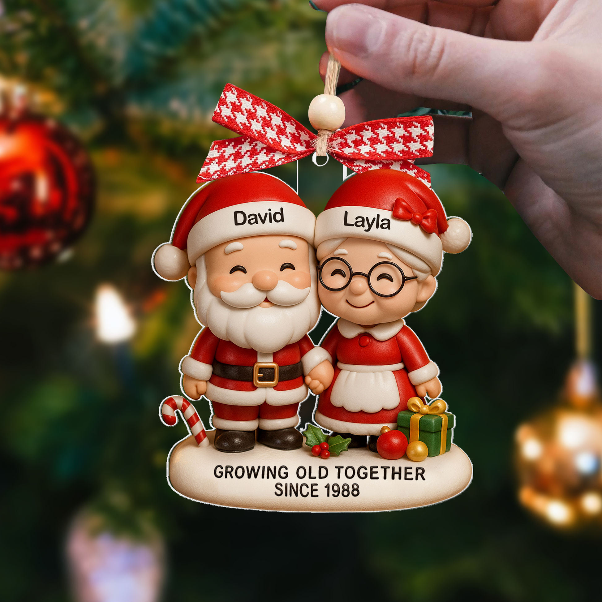 Personalized Growing Old Together Ornament, Custom Santa Christmas Gift for Couples, Anniversary Gift, Parents or Grandparents Keepsake