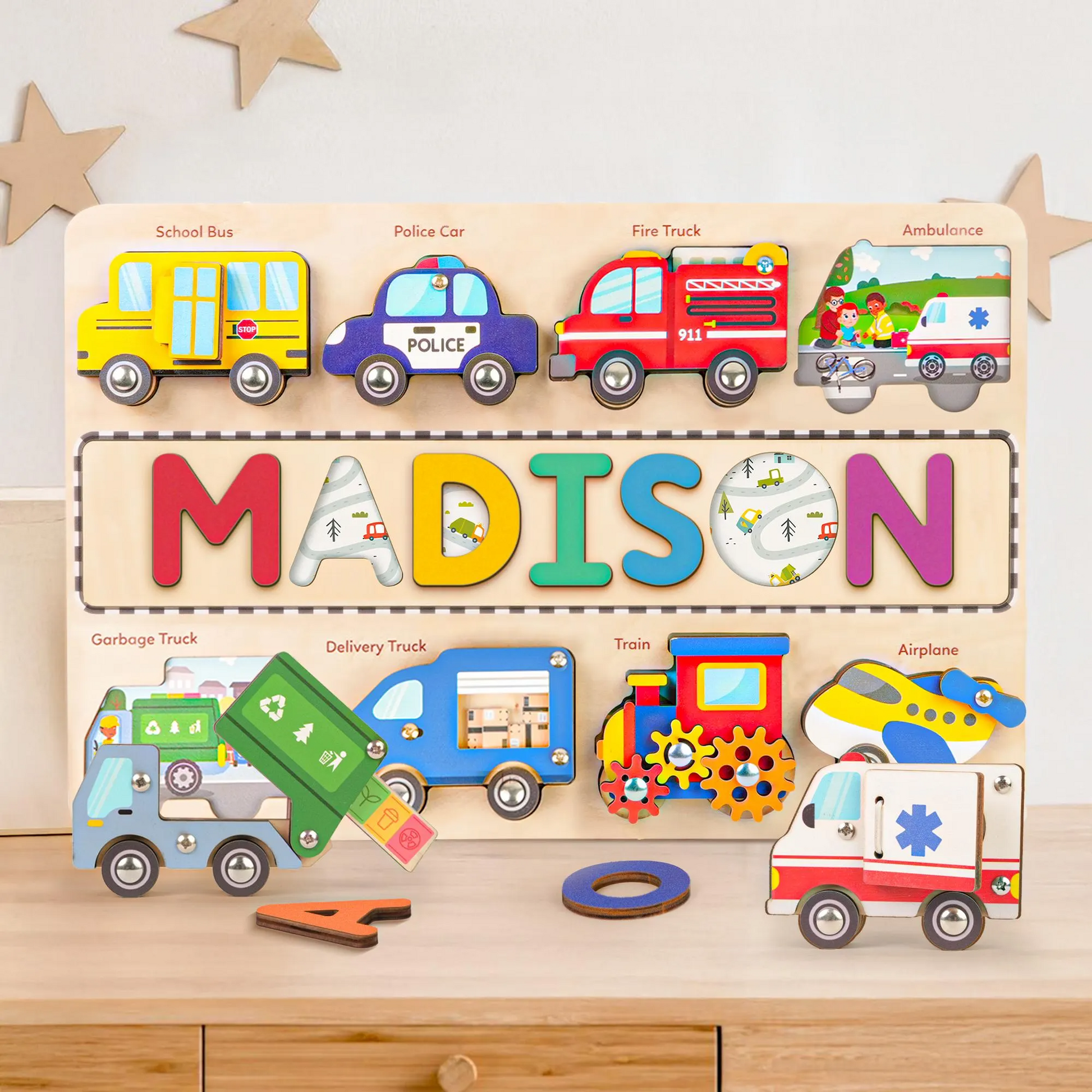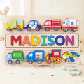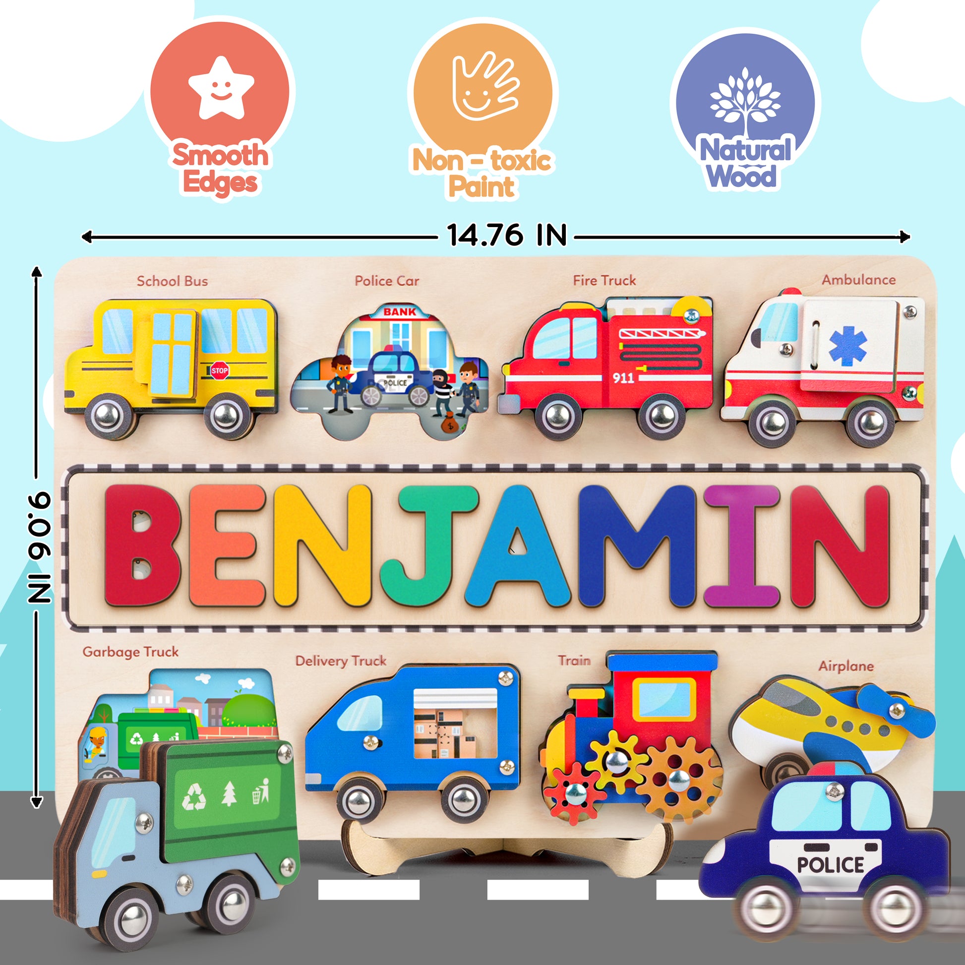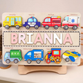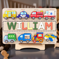 Personalized Wooden Name Puzzle with Vehicles – Toy For 3 Year Old