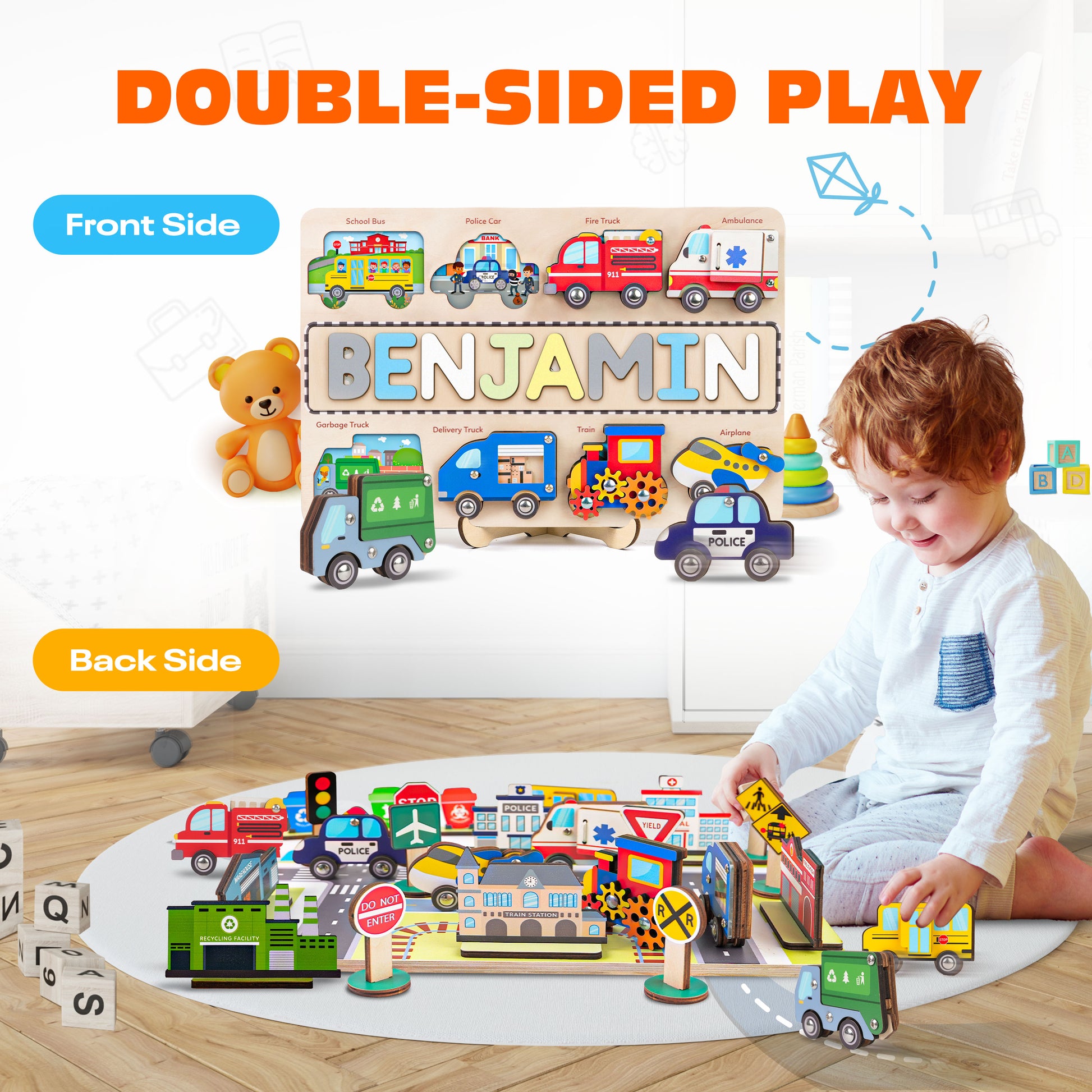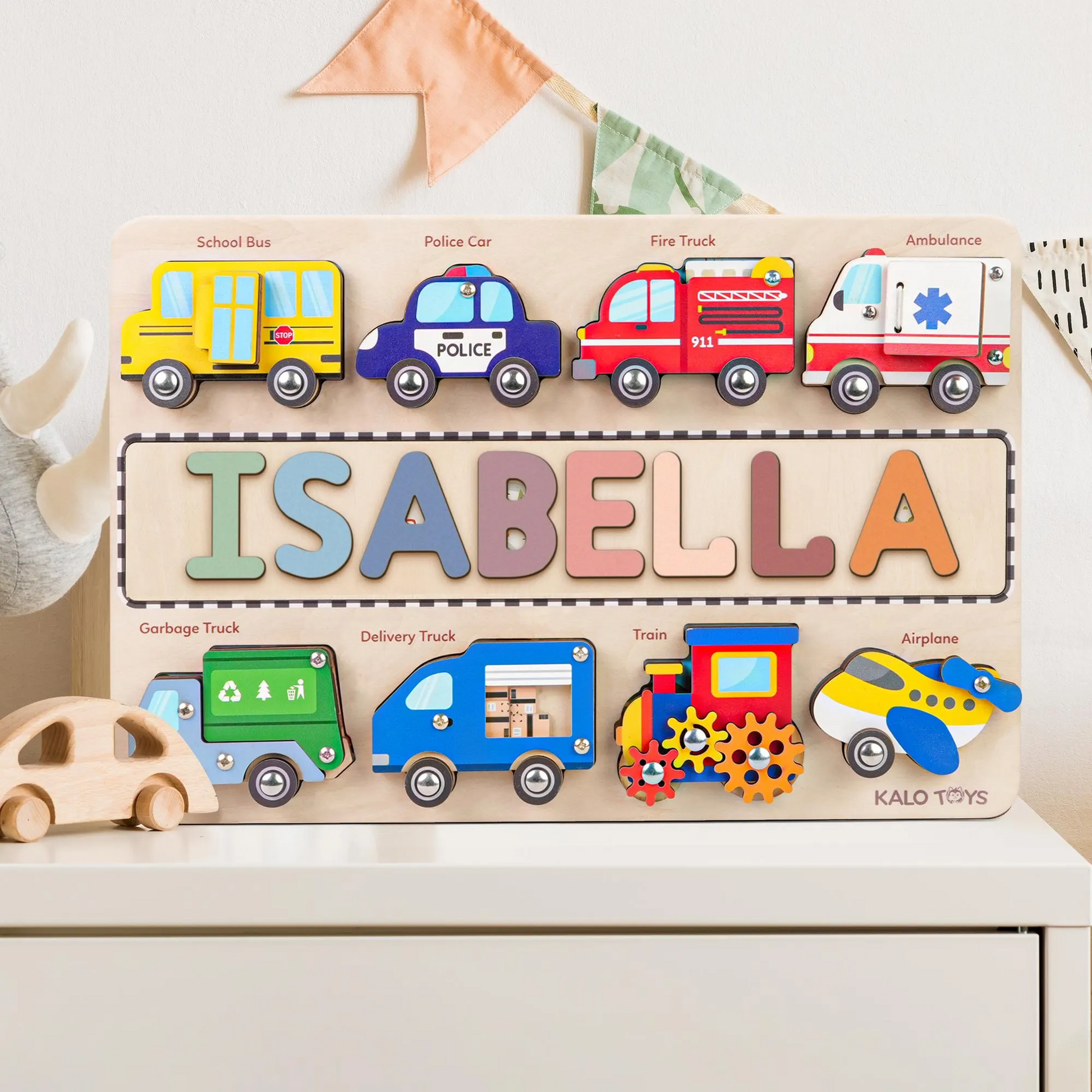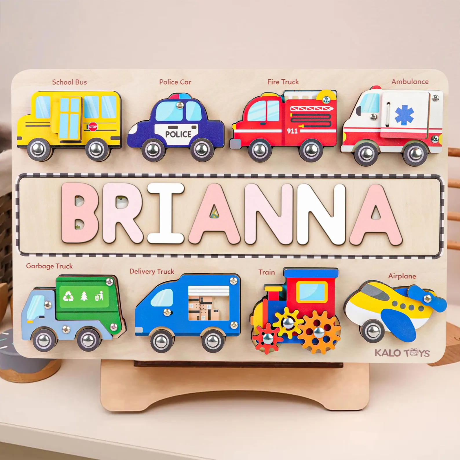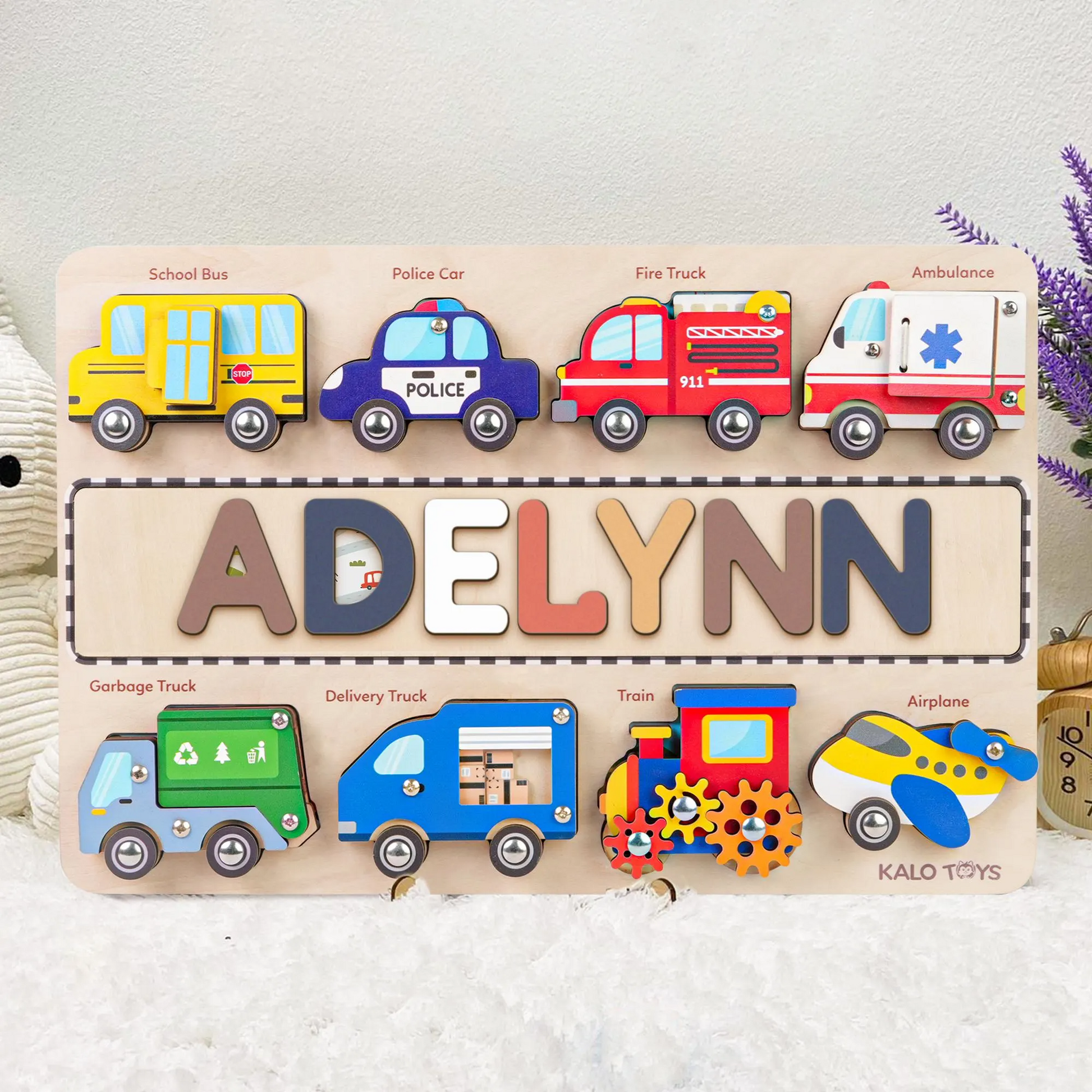 Personalized Vehicle Name Puzzle Busy Board - Gift for Toddlers 1-3 year olds NP56