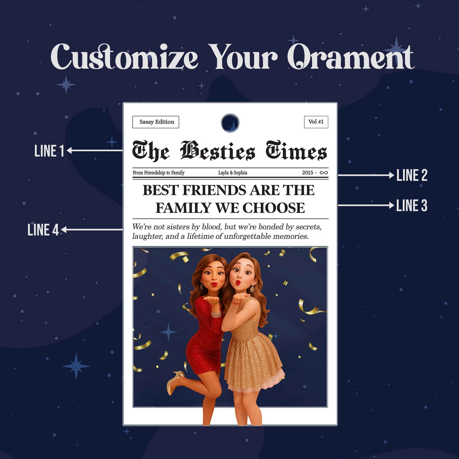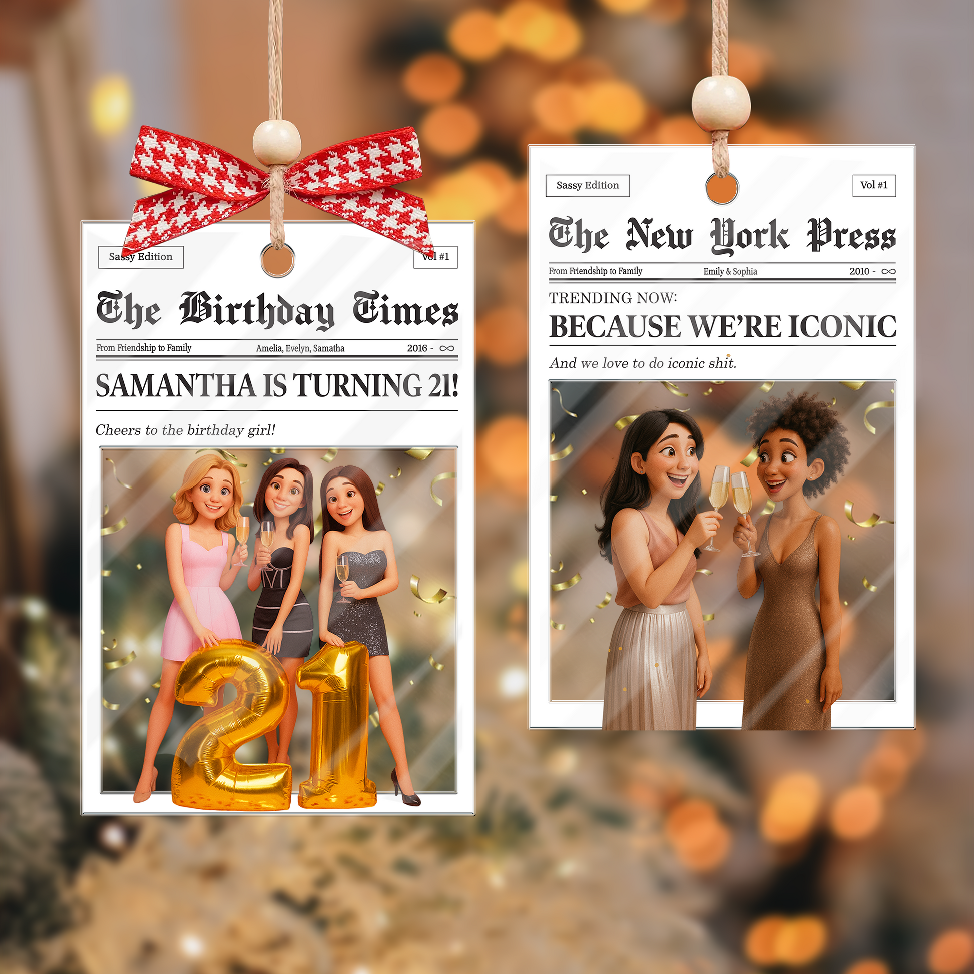 The B*tches Times, Here's To Another Year Of Us Laughing At Our Own Jokes, Personalized Photo 4D Effect Figure Acrylic Ornament, Besties Gifts, Friendship Gifts