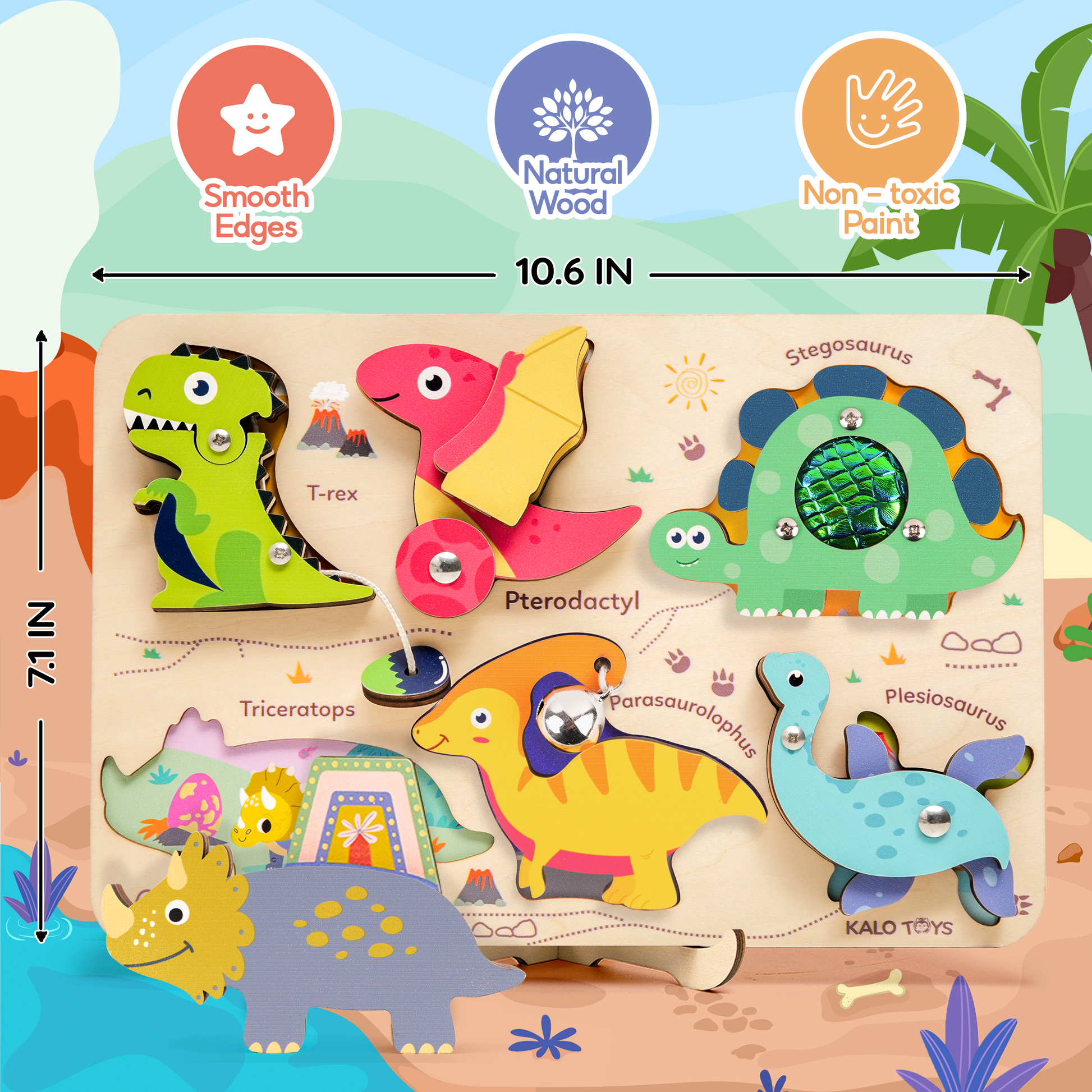 Wooden Dinosaur Sensory Puzzle Toy Set - Montessori Learning Toy for Toddlers (Ages 1–3)