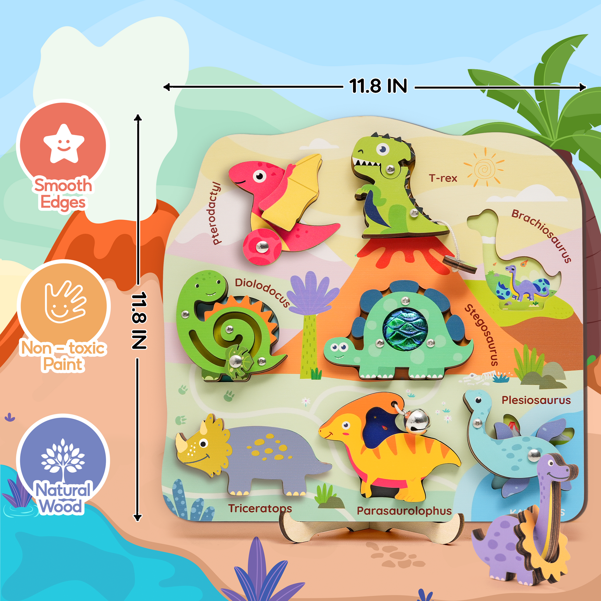 Designed to combine fun and learning, this wooden Montessori puzzle helps little explorers develop essential early skills — from fine motor coordination to sensory awareness — all while playing with their favorite dinosaurs!