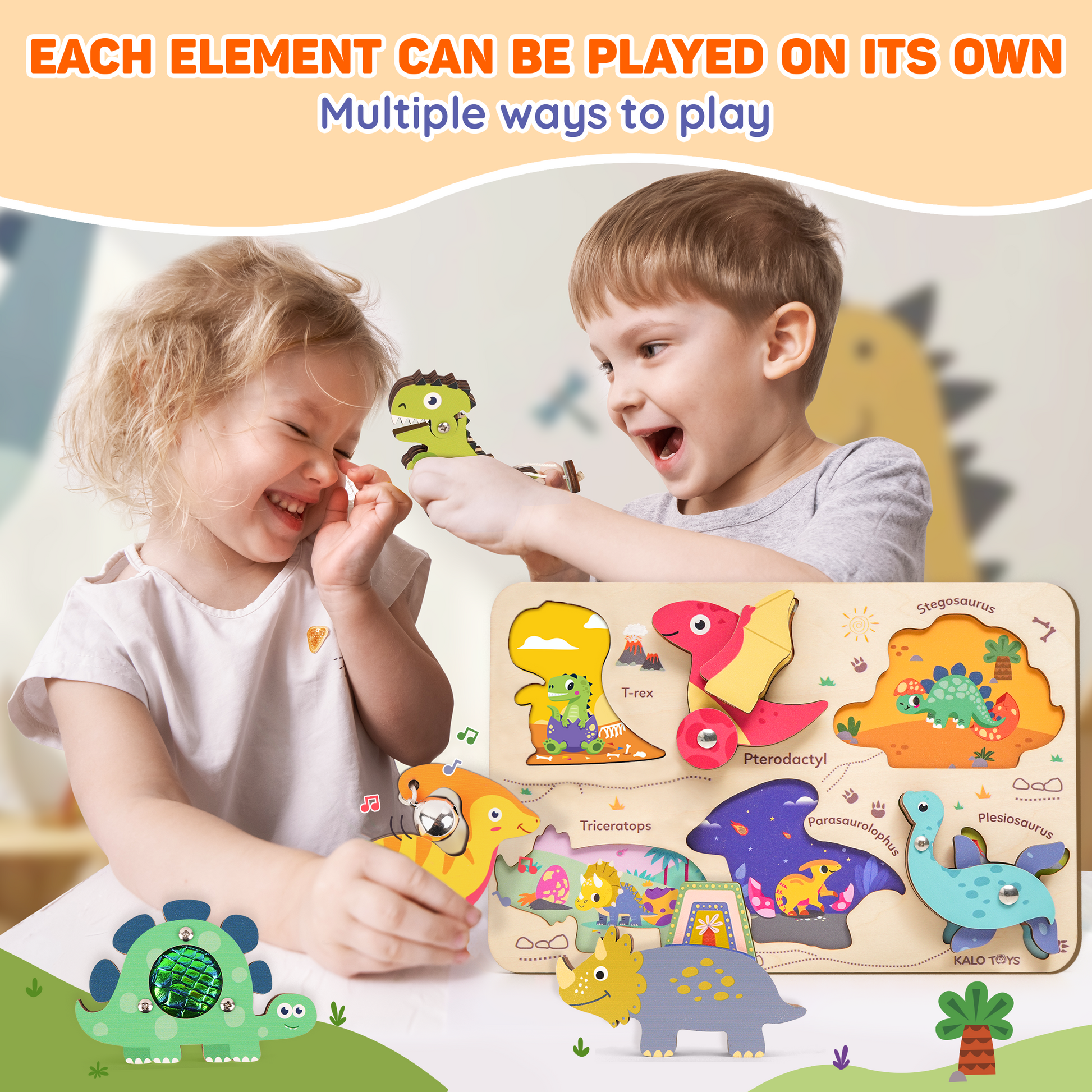 Engages visual, auditory, tactile, motor, and proprioceptive senses with each dino offering a unique interactive activity. - 🦕 Meet the Dino Squad