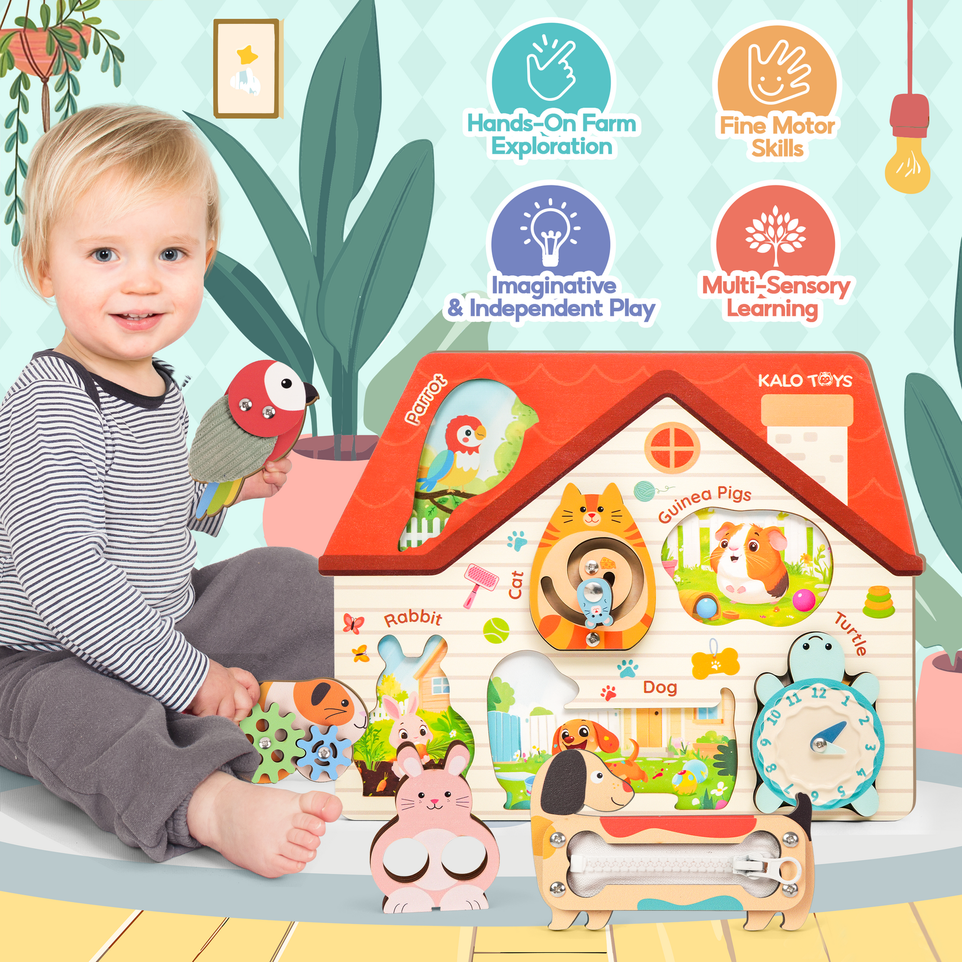 Wooden Pet House Sensory Puzzle Toy - Montessori Learning Toy for Toddlers (Ages 1–3)