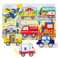Wooden Vehicle Sensory Puzzle Toy — Montessori Transportation Learning Toy for Toddlers (Ages 1–3)