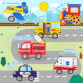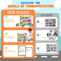 Each vehicle teaches a new skill — from spinning, pushing, and turning to recognizing real-world transportation types and their roles. -