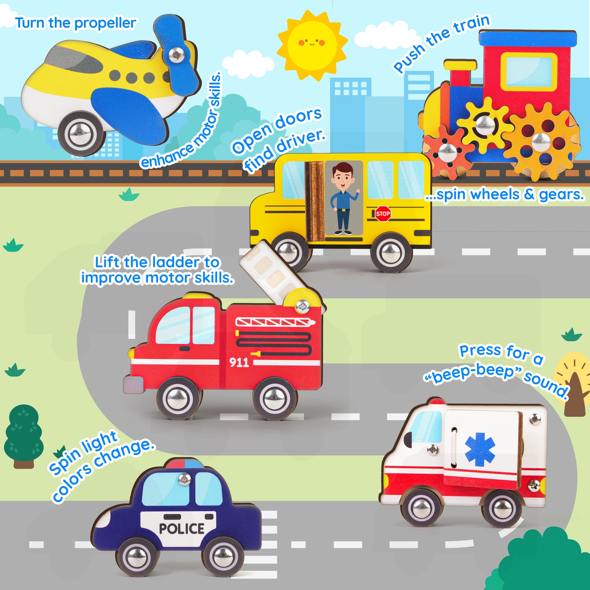 ✨ From propellers to police sirens, every twist, spin, and roll helps your toddler learn, explore, and grow through joyful play.